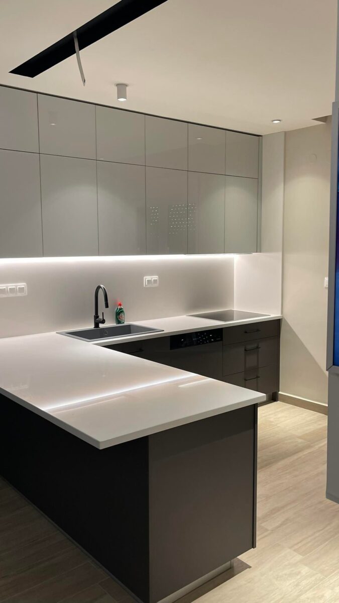 Σύγχρονη κουζίνα – συνδιασμός ακριλικό ματ και γυαλιστερό