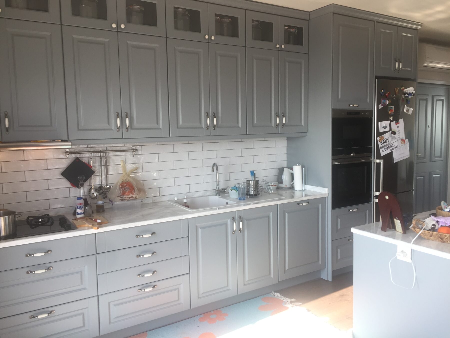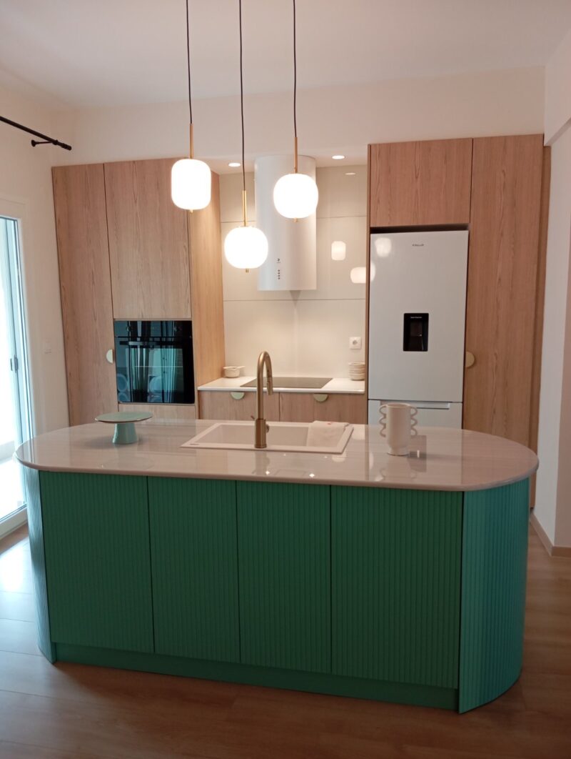 Κουζίνα με πετρόλ νησίδα