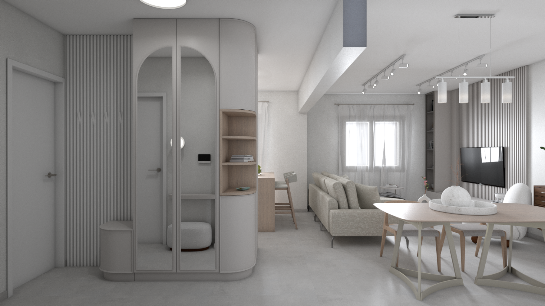 Υπόλευκο minimal σπίτι – επίπλωση