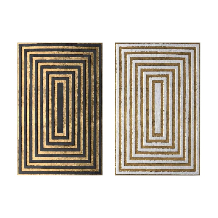 Οι πίνακες τοίχου μεταμορφώνουν τον τρόπο που αντιλαμβανόμαστε έναν χώρο. Διακοσμήστε, λοιπόν, τον χώρο σας με την καινούργια σειρά πινάκων τοίχου! Αυτοί οι πίνακες (2τμχ) σε κύρια χρώματα χρυσό, λευκό και μαύρο απεικονίζουν ομόκεντρα ορθογώνια, και έχουν υλοποιηθεί σε εκτυπωμένο καμβά σε πλαίσιο από ξύλο πεύκου, και μπορείτε να τους τοποθετήσετε είτε μαζί, είτε σε διαφορετικά σημεία τον καθένα!