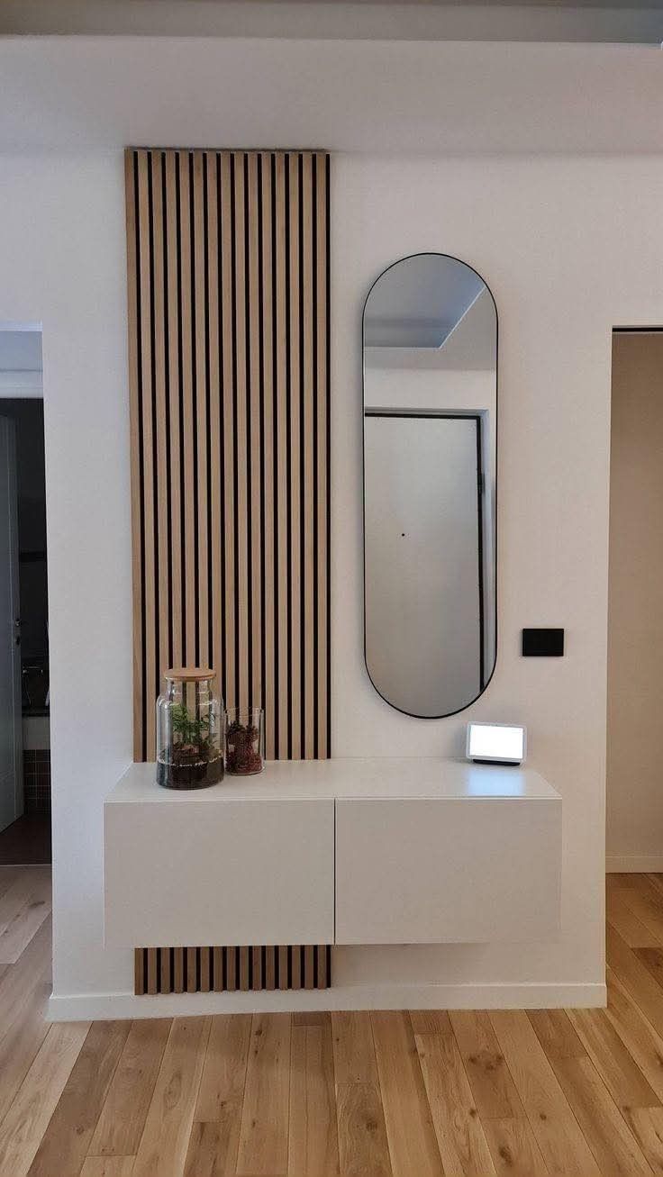 Ένα αξεπέραστο σε design έπιπλο εισόδου σε Minimal γραμμές, το οποίο συνδιάζει την αισθητική με τη λειτουργικότητα. Διαθέτει επιτοίχιο ντουλάπι αποθήκευσης , επιτοίχιο καθρέπτει με καμπύλα τελειώματα και επιτοίχια πάνελ με ρίγες.
