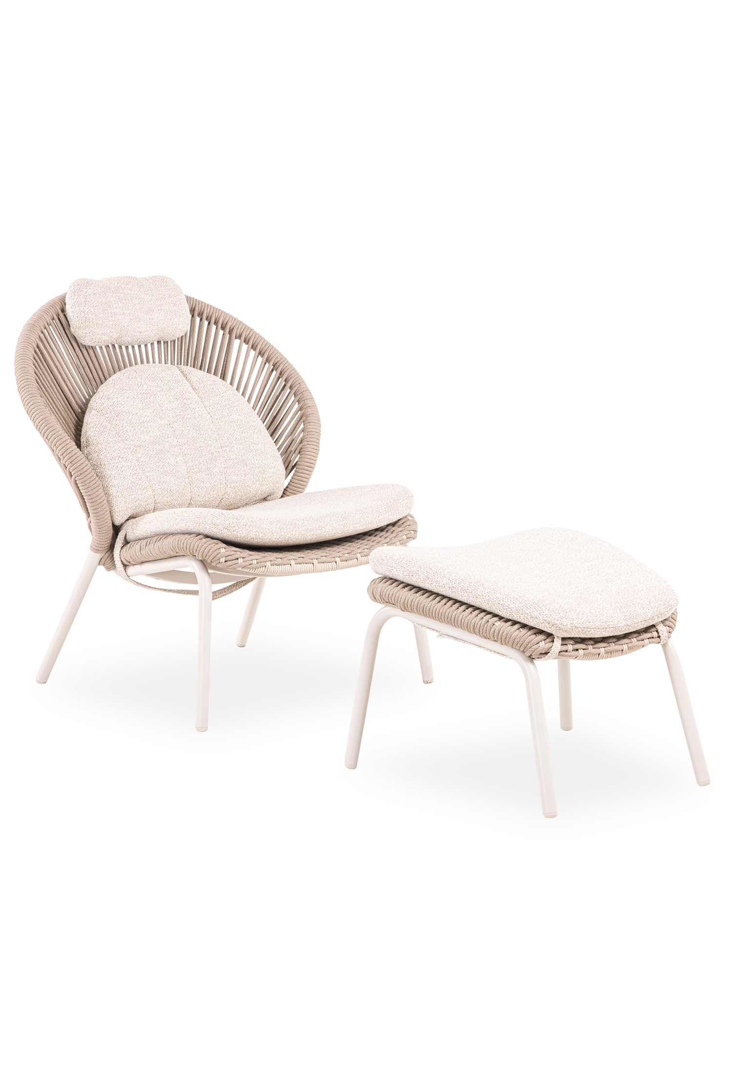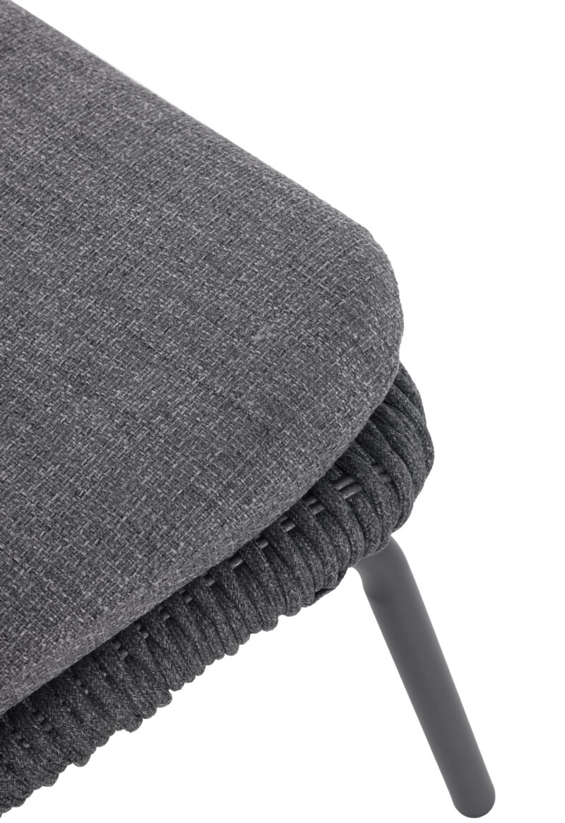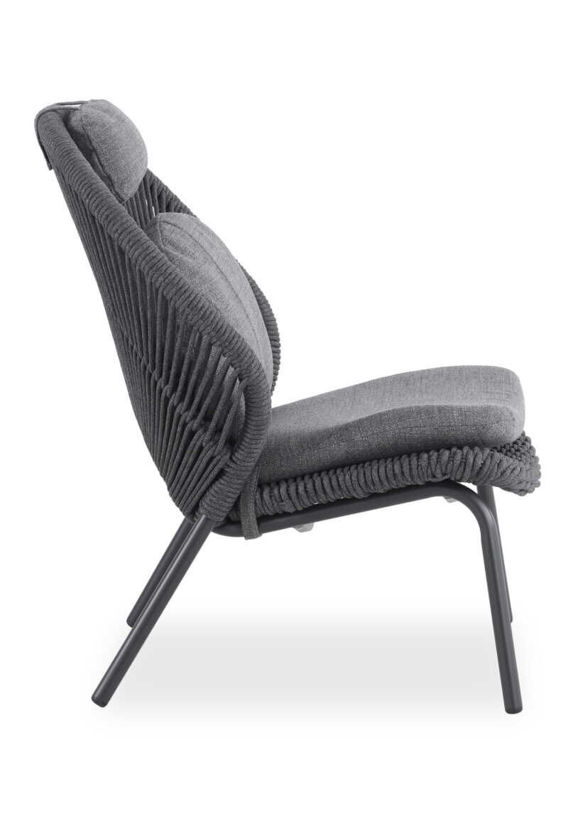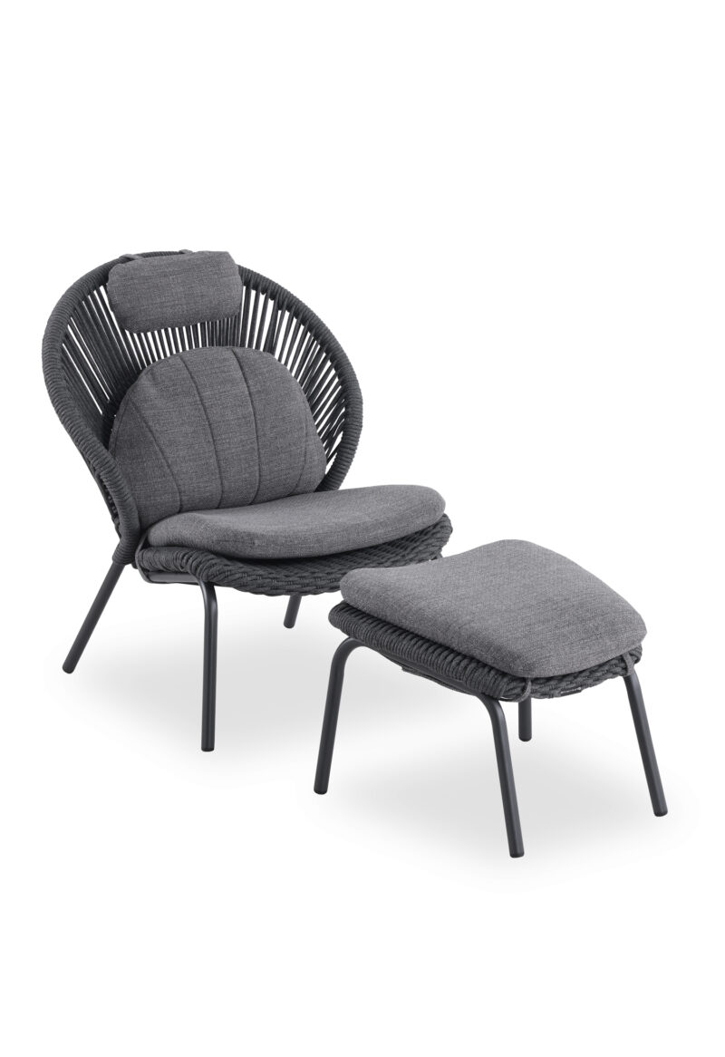 Το νέο σετ καρέκλας lounge με υποπόδιο TEMPORAL σε ΑΝΘΡΑΚΙ χρώμα. Επίσης, κατασκευάζεται σε χρώμα της πολυθρόνας είναι ΚΡΕΜ (ivory), ενώ το σχοινί είναι σε φυσικό χρώμα και τα καλύμματα των αναπαυτικών μαξιλαριών σε ΜΠΕΖ. Κατασκευασμένη από αλουμίνιο και σχοινί ως επένδυση αποπνέει πολυτέλεια και άνεση. Ξεχωρίζει για την ψηλή πλάτη με ανεξάρτητο μαξιλαράκι για το κεφάλι και το κυρτό κάθισμα, που δημιουργούν μια μοναδική εικόνα σε συνδυασμό με το ίδιας αισθητικής υποπόδιο! Πέρα από τακτικό ξεσκόνισμα, μπορείτε να την σκουπίζετε με ένα υγρό πανί. Μην χρησιμοποιείτε χημικά καθαριστικά.