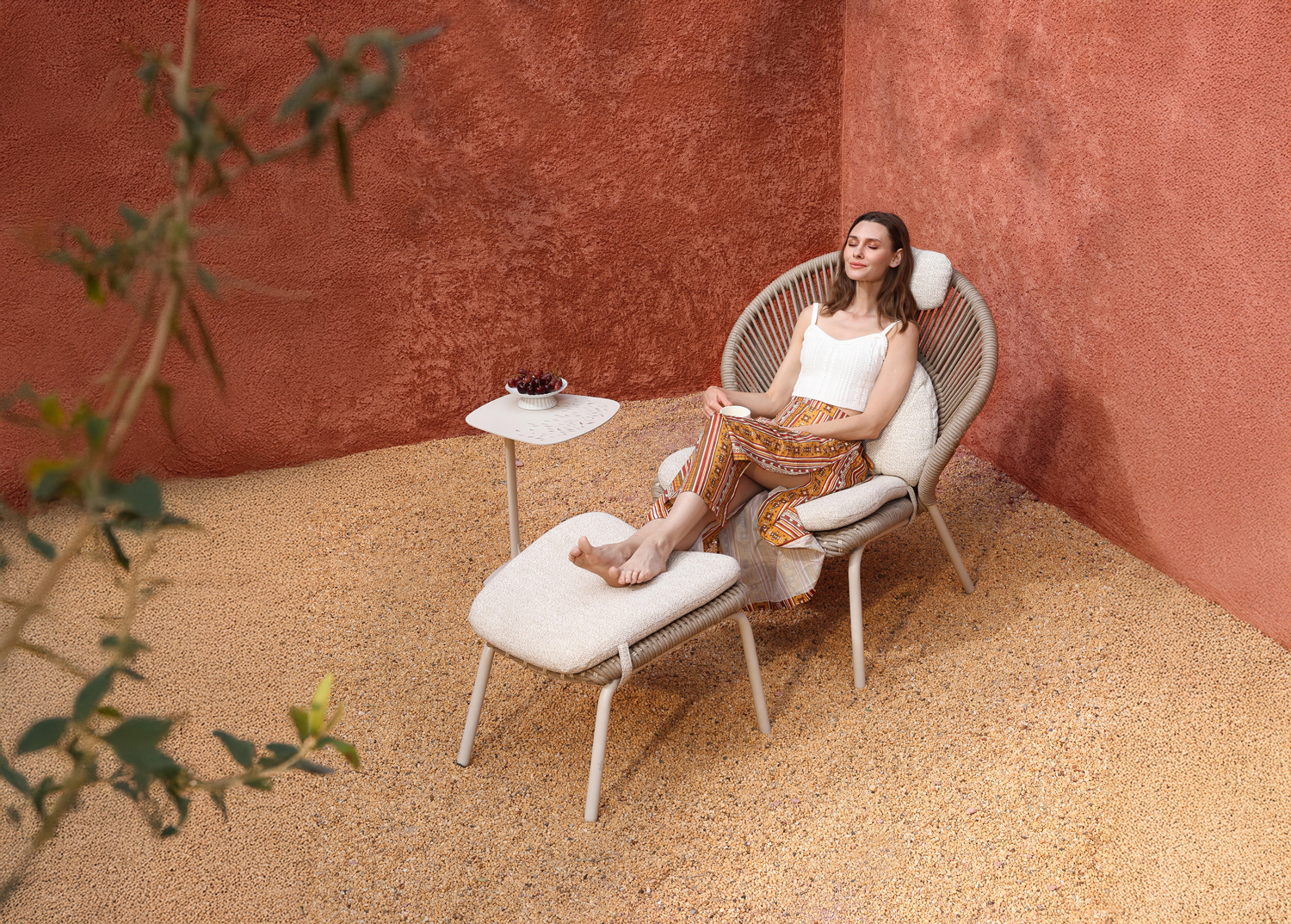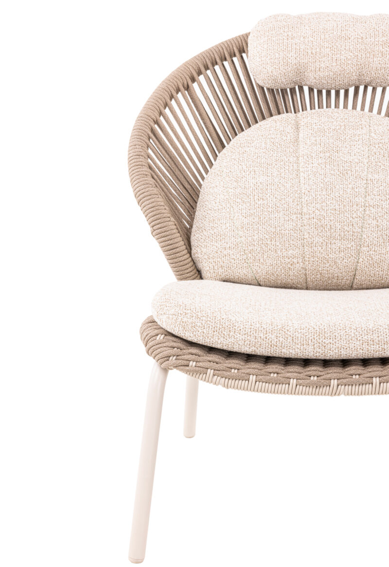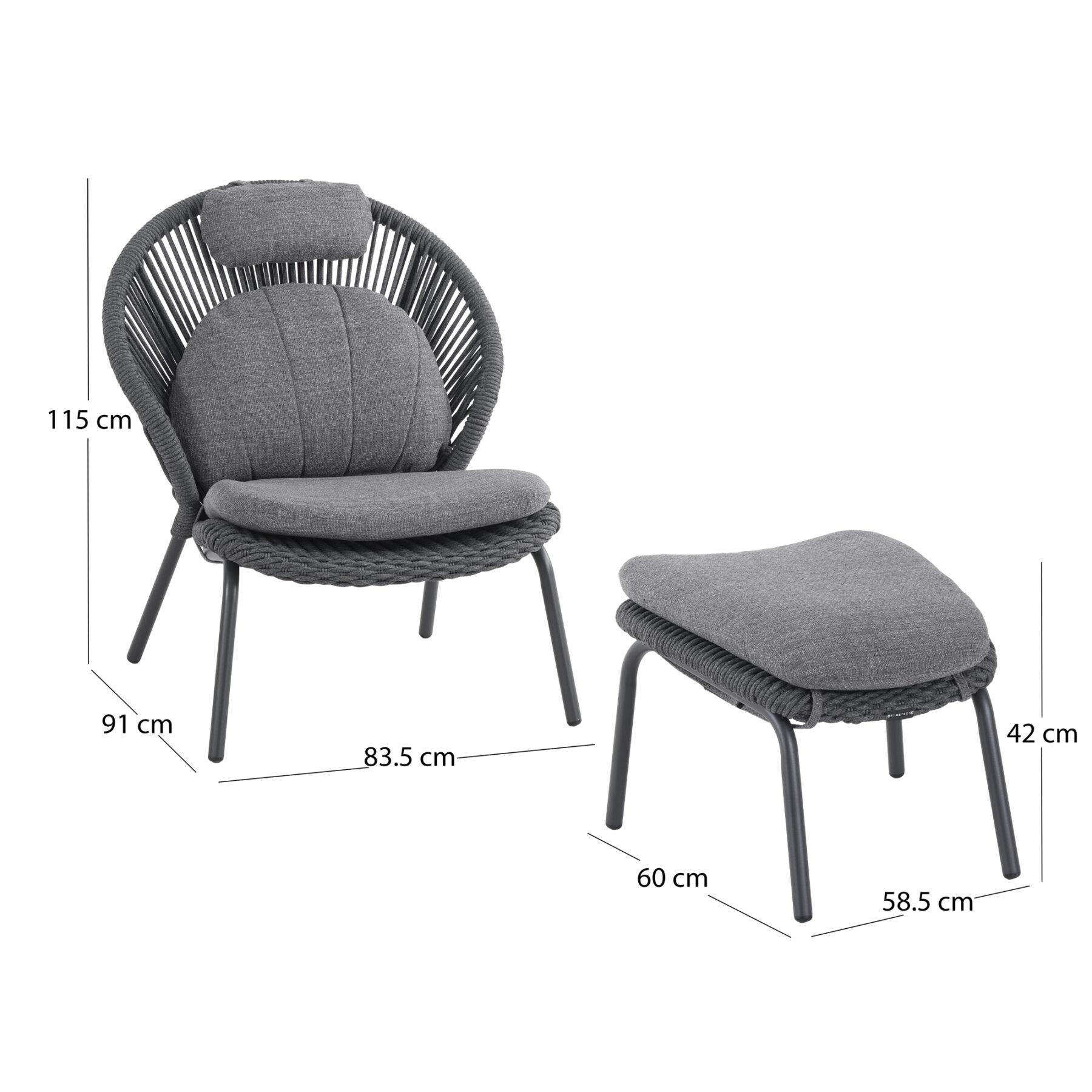 Το νέο σετ καρέκλας lounge με υποπόδιο TEMPORAL σε ΑΝΘΡΑΚΙ χρώμα. Επίσης, κατασκευάζεται σε χρώμα της πολυθρόνας είναι ΚΡΕΜ (ivory), ενώ το σχοινί είναι σε φυσικό χρώμα και τα καλύμματα των αναπαυτικών μαξιλαριών σε ΜΠΕΖ. Κατασκευασμένη από αλουμίνιο και σχοινί ως επένδυση αποπνέει πολυτέλεια και άνεση. Ξεχωρίζει για την ψηλή πλάτη με ανεξάρτητο μαξιλαράκι για το κεφάλι και το κυρτό κάθισμα, που δημιουργούν μια μοναδική εικόνα σε συνδυασμό με το ίδιας αισθητικής υποπόδιο! Πέρα από τακτικό ξεσκόνισμα, μπορείτε να την σκουπίζετε με ένα υγρό πανί. Μην χρησιμοποιείτε χημικά καθαριστικά.