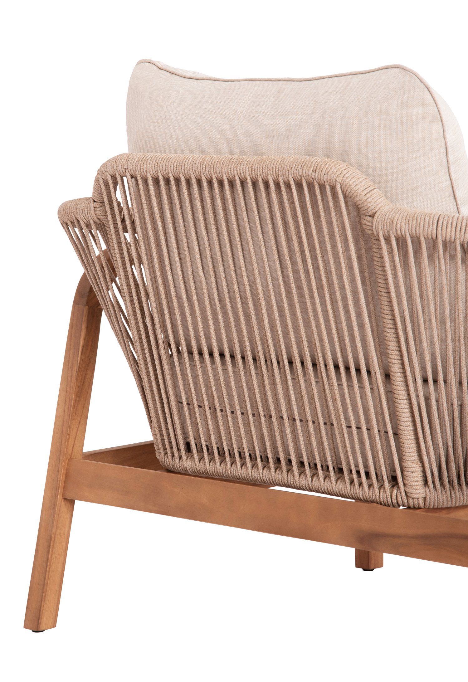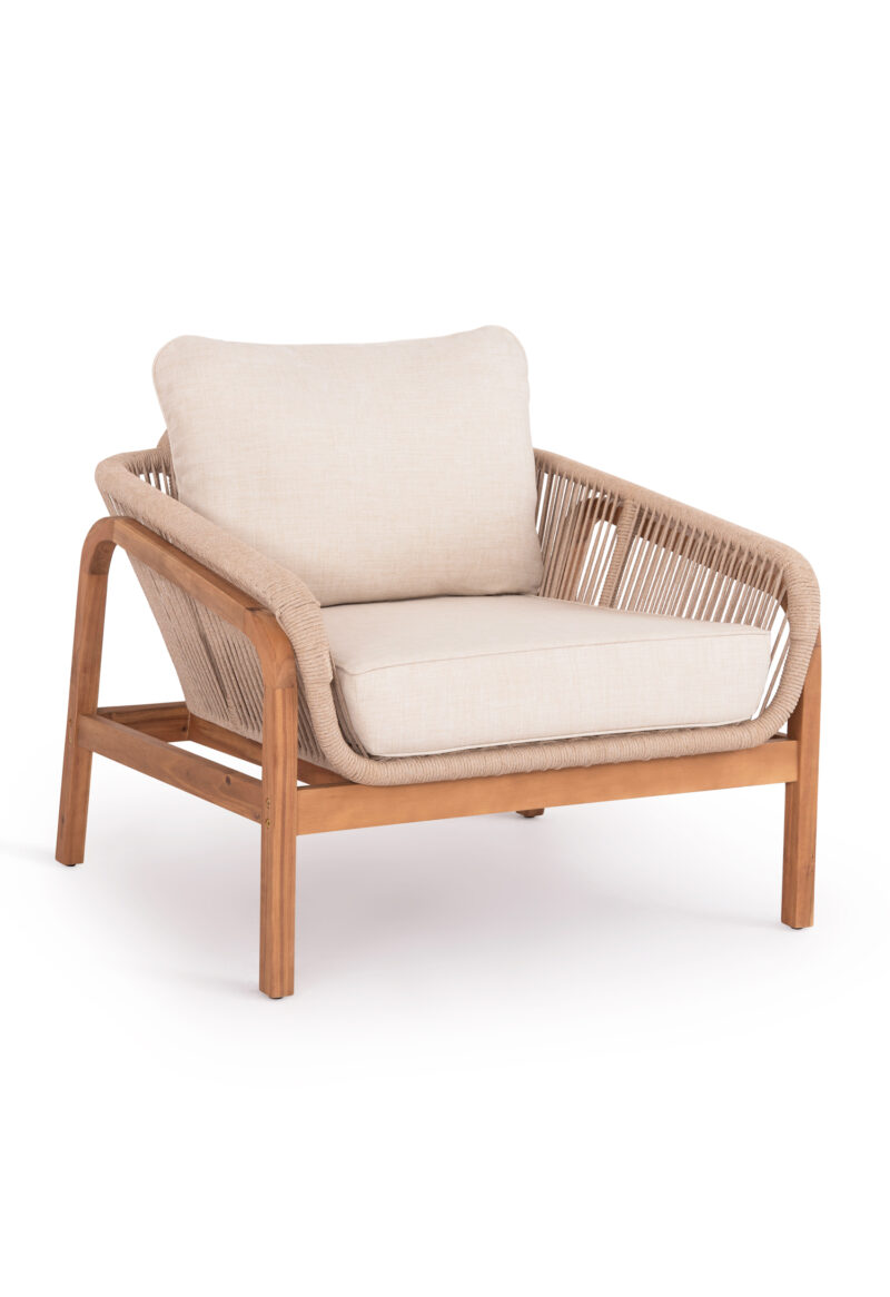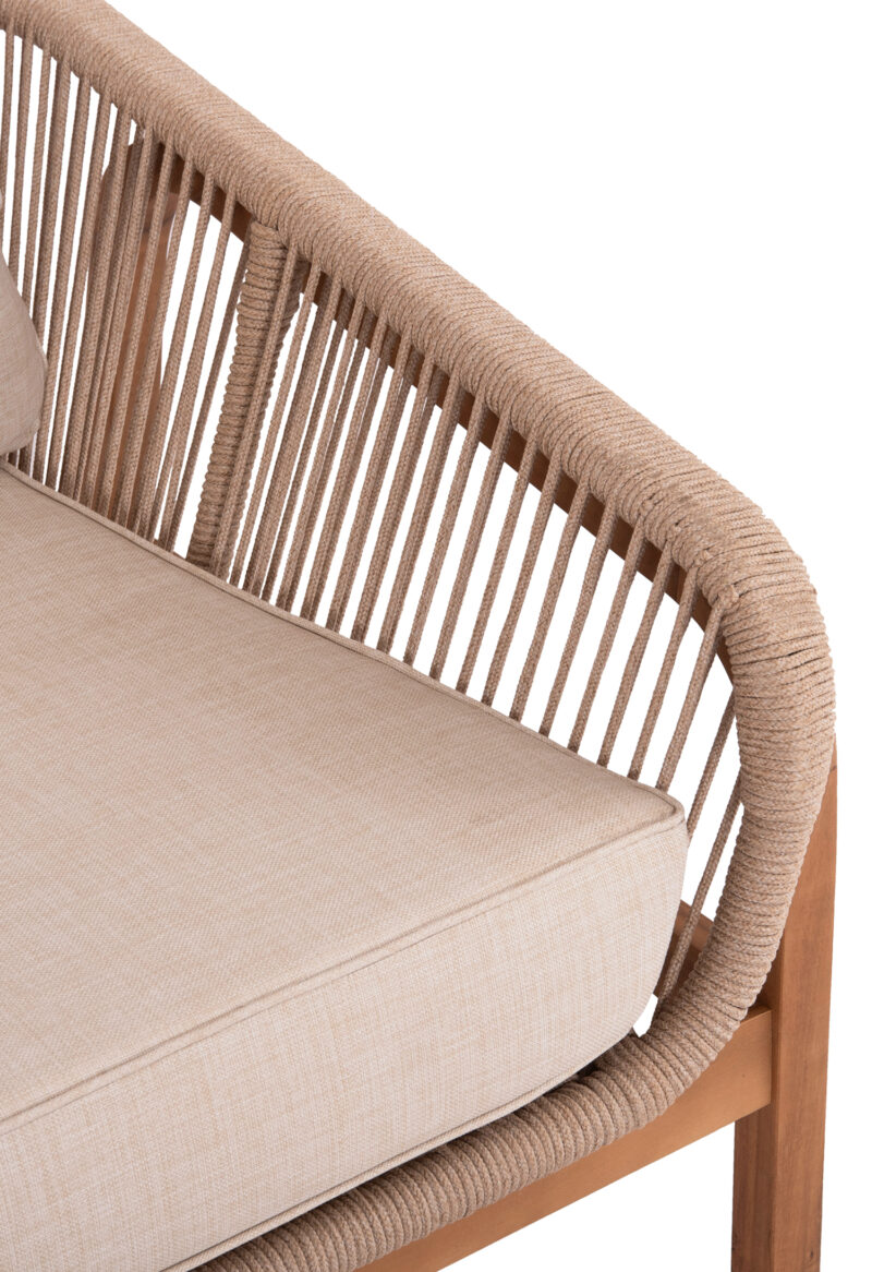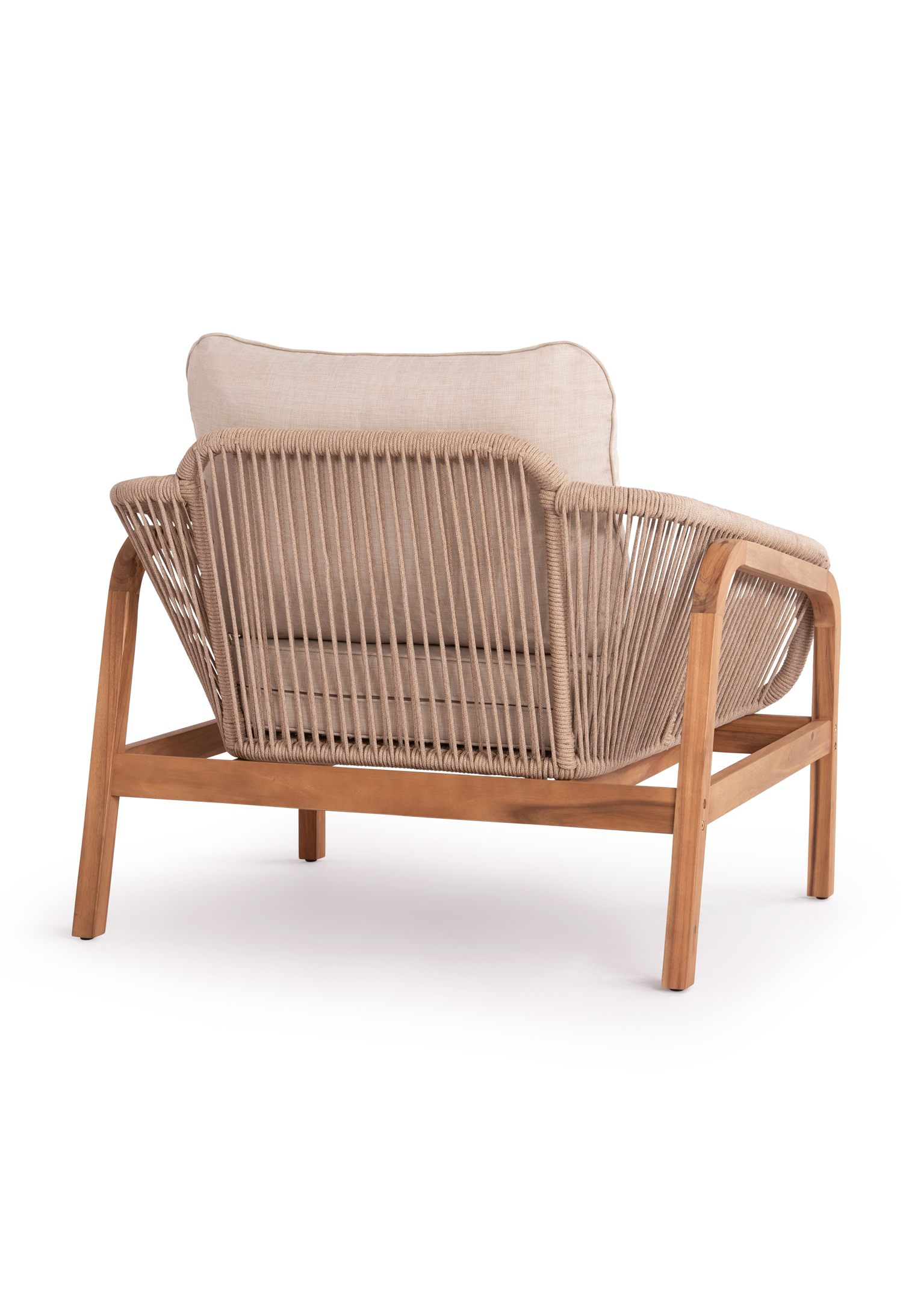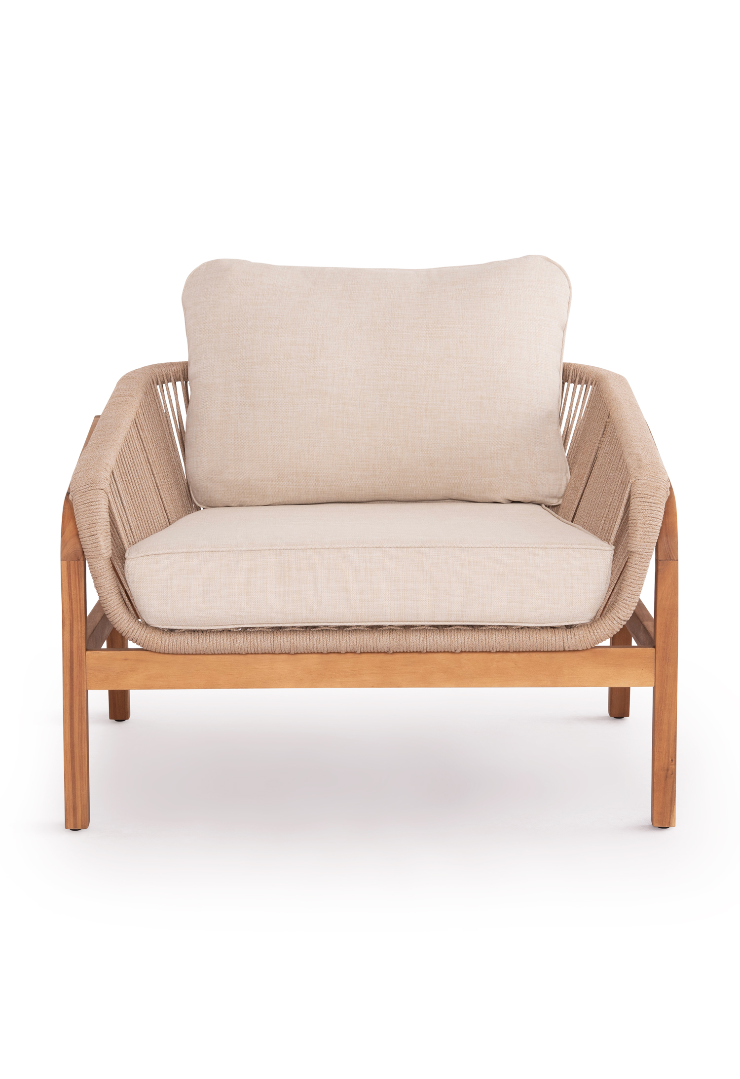 Η πολυθρόνα εξωτερικού χώρου OASIS, ακολουθεί πιστά την φιλοσοφία της που προτάσσει την απαράμιλλη ποιότητα με την ανώτερη αισθητική. Ο σκελετός είναι από ξύλο ακακίας σε ΦΥΣΙΚΟ χρώμα ενώ το πλαίσιο του καθίσματος είναι από αλουμίνιο με επένδυση σχοινιού σε ΜΠΕΖ χρώμα. Τα καλύμματα στα μαξιλάρια είναι και αυτά σε ΜΠΕΖ χρώμα ταιριάζοντας απόλυτα με το υπόλοιπο σύνολο. Η αισθητική και τα γήινα χρώματα κάθε σπιθαμής αυτής της πολυθρόνας, θα μαγνητίσουν όλα τα βλέμματα. Πέρα από τακτικό ξεσκόνισμα, μπορείτε να σκουπίζετε με ένα υγρό πανί. ΔΕΝ χρησιμοποιούμε απορρυπαντικά, ούτε λευκαντικά και γυαλιστικά. Εάν υπάρχουν λεκέδες χρησιμοποιούμε ένα απαλό spray από τα πολλά που κυκλοφορούν στην αγορά. Γενικά, ακόμα και σε περίπτωση λεκέδων το μυστικό είναι το γρήγορο καθάρισμα πριν προλάβει το ξύλο να «ποτίσει».