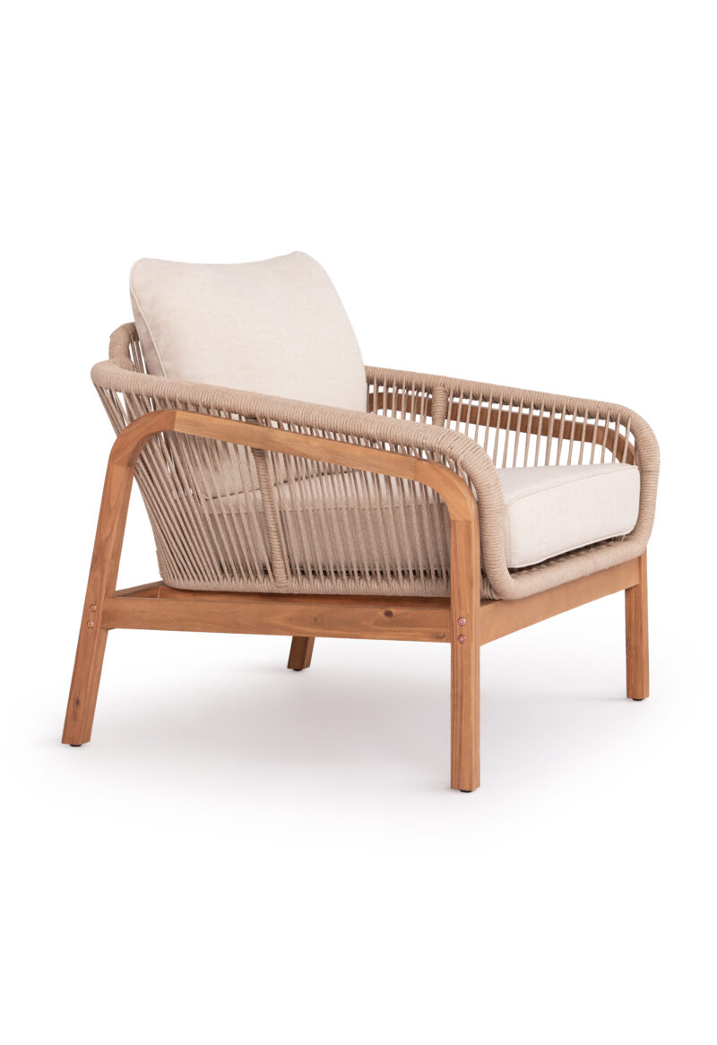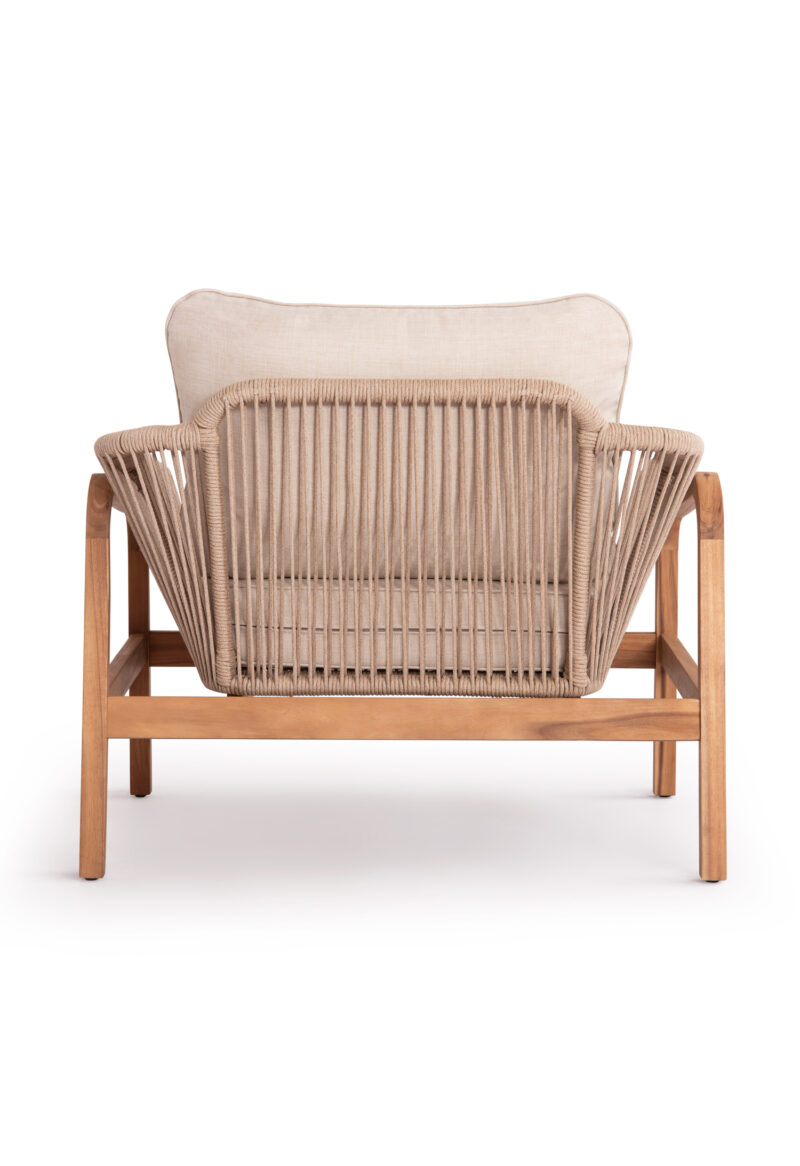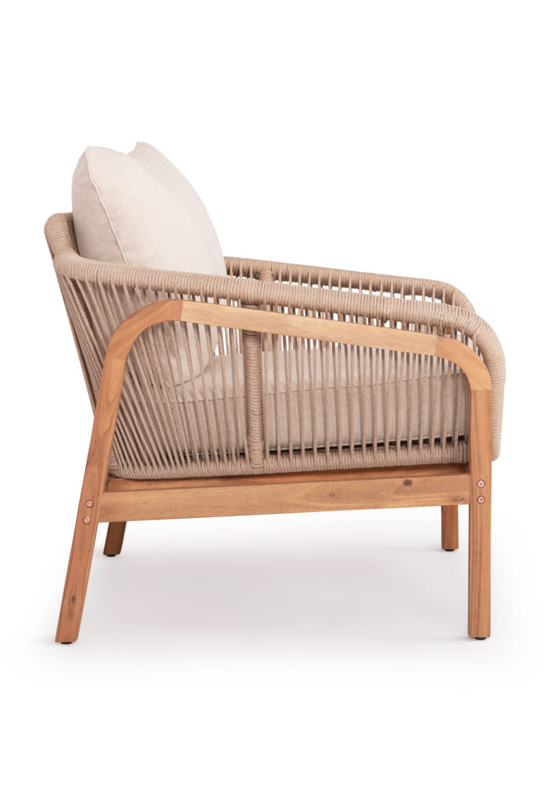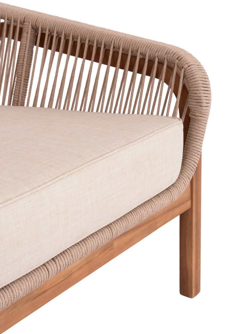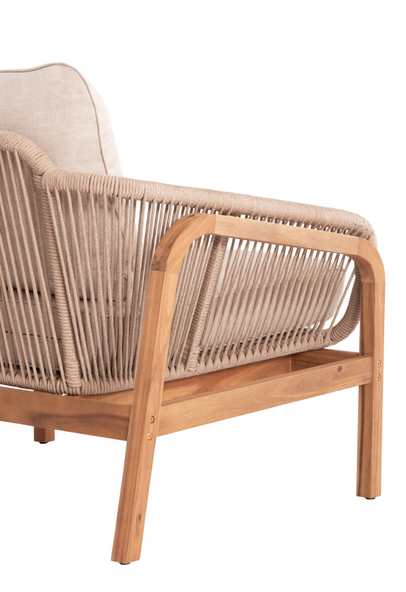 Η πολυθρόνα εξωτερικού χώρου OASIS, ακολουθεί πιστά την φιλοσοφία της που προτάσσει την απαράμιλλη ποιότητα με την ανώτερη αισθητική. Ο σκελετός είναι από ξύλο ακακίας σε ΦΥΣΙΚΟ χρώμα ενώ το πλαίσιο του καθίσματος είναι από αλουμίνιο με επένδυση σχοινιού σε ΜΠΕΖ χρώμα. Τα καλύμματα στα μαξιλάρια είναι και αυτά σε ΜΠΕΖ χρώμα ταιριάζοντας απόλυτα με το υπόλοιπο σύνολο. Η αισθητική και τα γήινα χρώματα κάθε σπιθαμής αυτής της πολυθρόνας, θα μαγνητίσουν όλα τα βλέμματα. Πέρα από τακτικό ξεσκόνισμα, μπορείτε να σκουπίζετε με ένα υγρό πανί. ΔΕΝ χρησιμοποιούμε απορρυπαντικά, ούτε λευκαντικά και γυαλιστικά. Εάν υπάρχουν λεκέδες χρησιμοποιούμε ένα απαλό spray από τα πολλά που κυκλοφορούν στην αγορά. Γενικά, ακόμα και σε περίπτωση λεκέδων το μυστικό είναι το γρήγορο καθάρισμα πριν προλάβει το ξύλο να «ποτίσει».