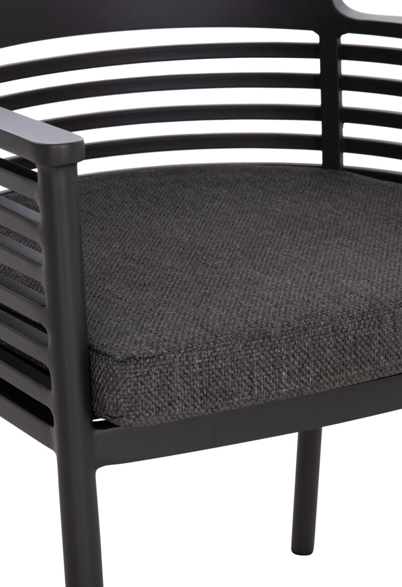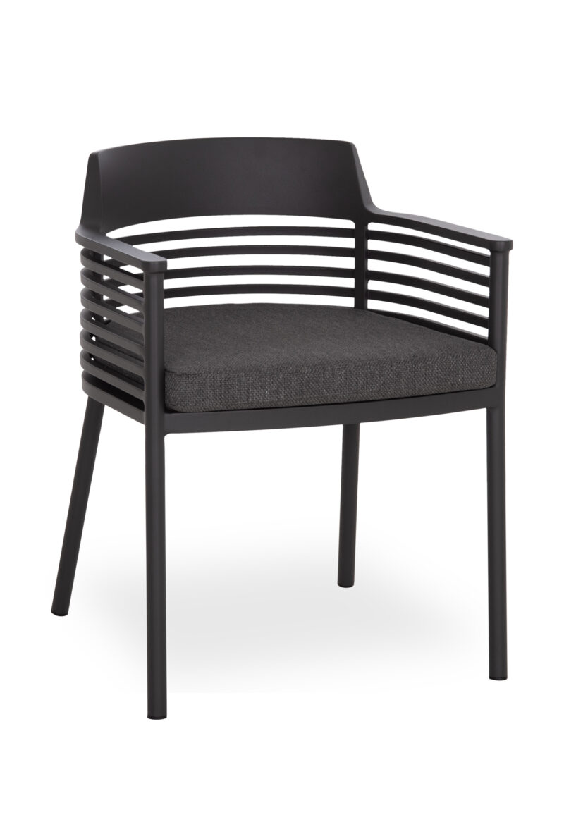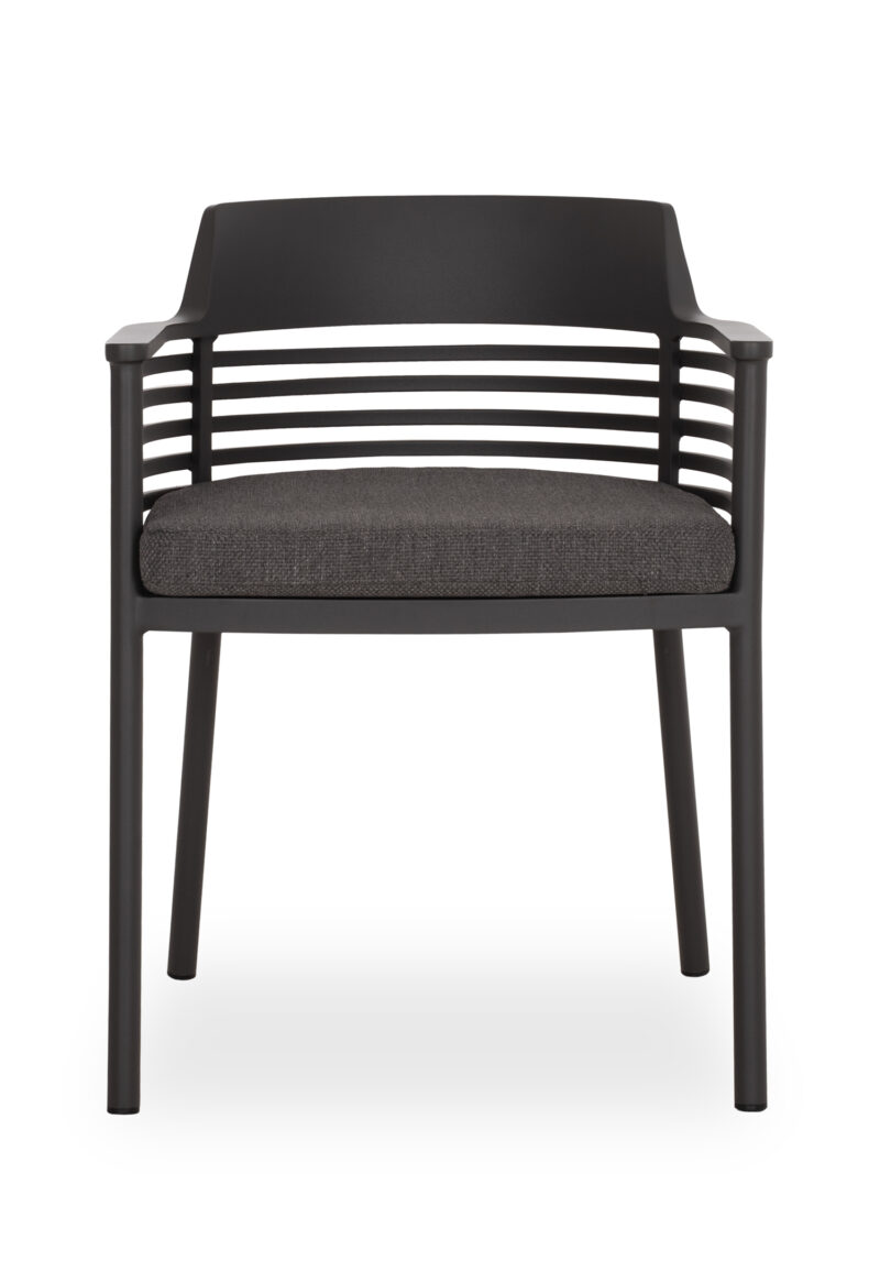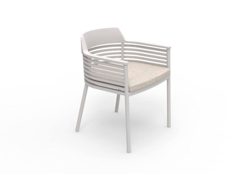Κατασκευασμένη από αλουμίνιο και με όμορφο σχεδιασμό αποπνέει πολυτέλεια και άνεση. Το κάλυμμα στο μαξιλάρι καθίσματος είναι OLEFIN ύφασμα σε ΜΠΕΖ ή ΣΚΟΥΡΟ ΓΚΡΙ χρώμα, το οποίο είναι υδατοαπωθητικό και ανθεκτικό. Το χρώμα της πολυθρόνας είναι ΚΡΕΜ και το μόνο που απομένει είναι την ταιριάξετε με ένα τραπέζι ανάλογης ποιότητας και αισθητικής. Πέρα από τακτικό ξεσκόνισμα, μπορείτε να την σκουπίζετε με ένα υγρό πανί. Μην χρησιμοποιείτε χημικά καθαριστικά.