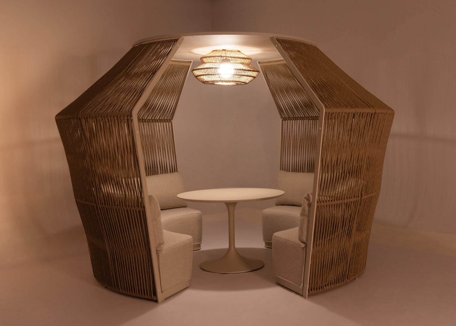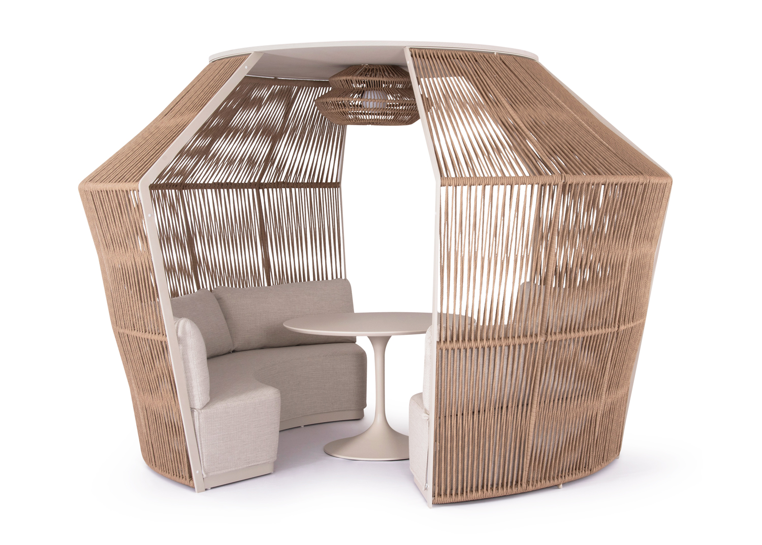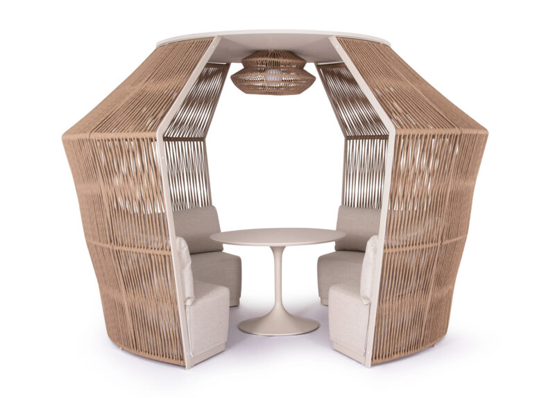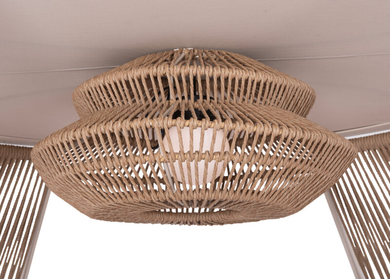 -Η επένδυση του gazebo έχει γίνει με φυσικό twisted wicker/rattan 10mm. Το Rattan είναι το καλύτερο και το πιο ευρέως χρησιμοποιούμενο φυσικό υλικό για πλεκτές κατασκευές, όπως wicker κτλ. Wicker ονομάζεται η τεχνική πλέξης του Rattan.