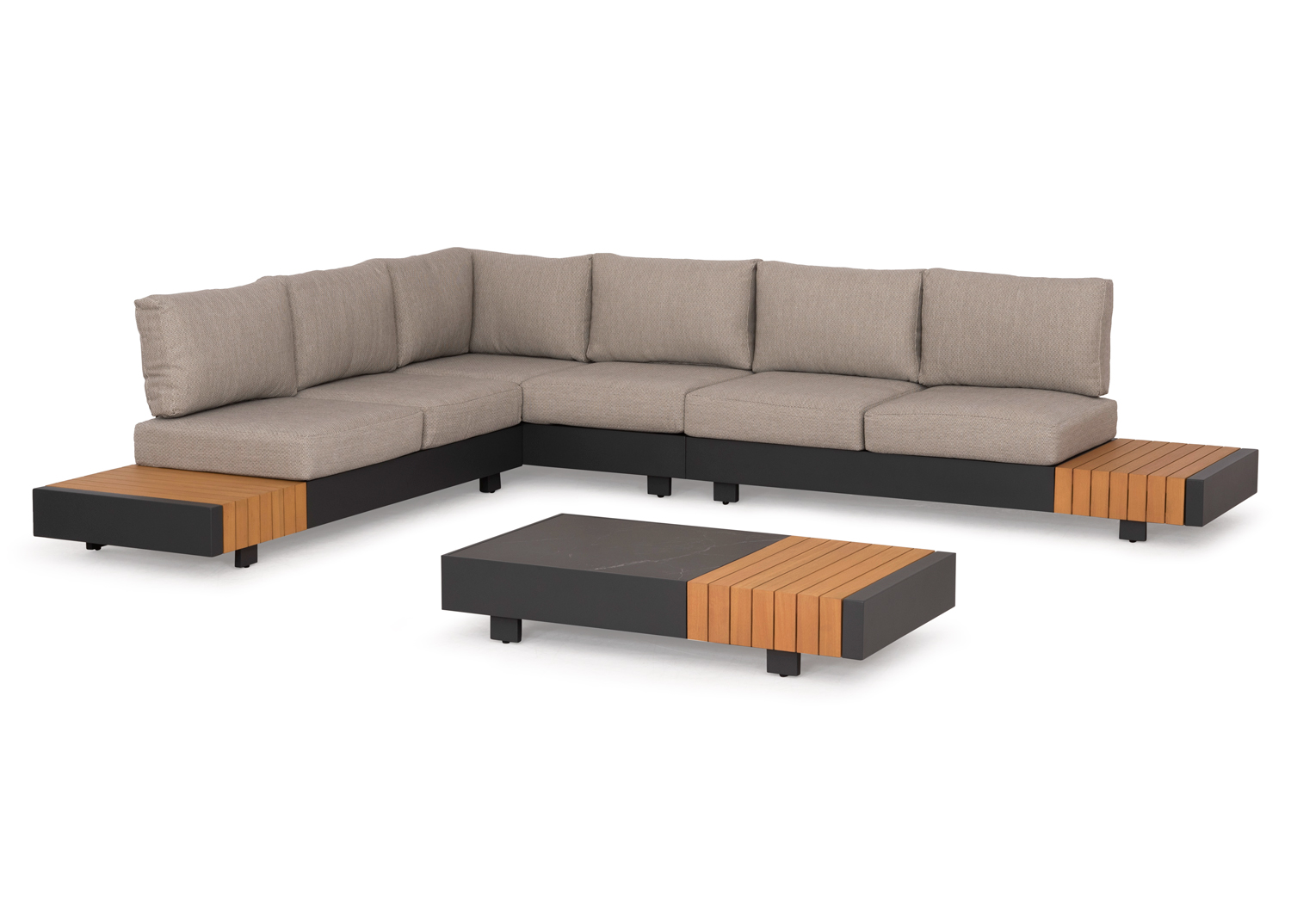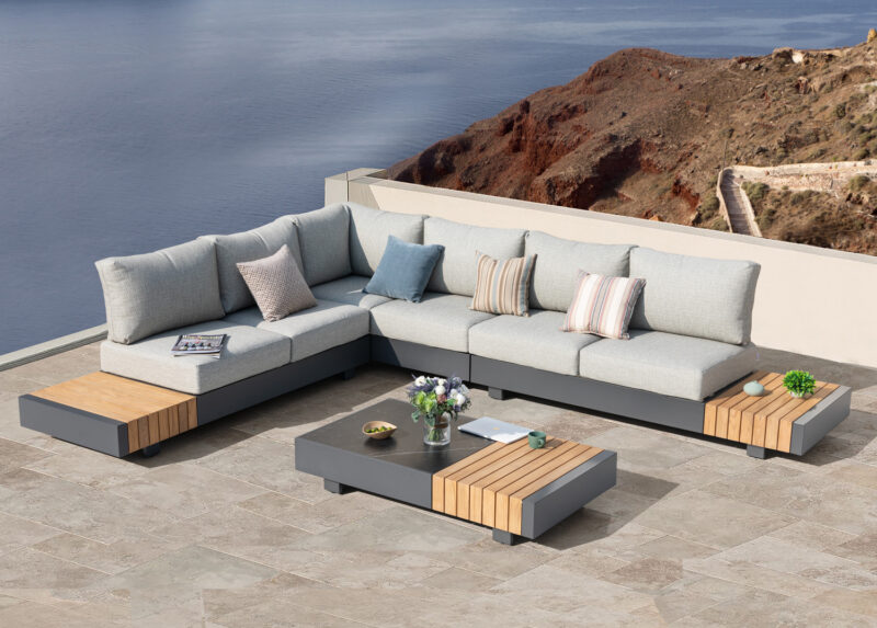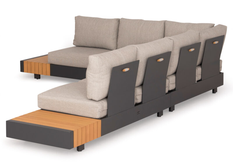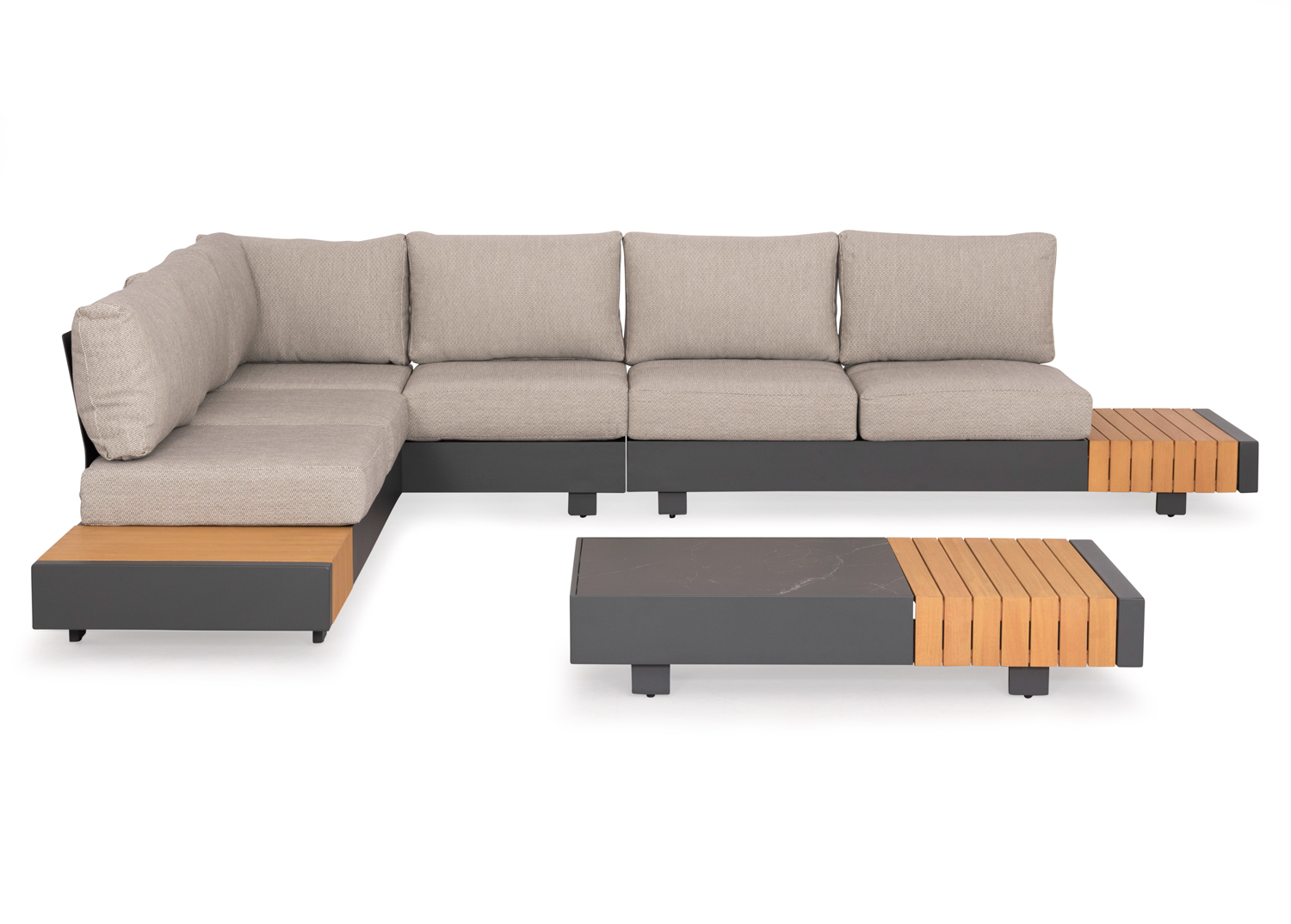 Λεπτομέρειες: Σετ σαλόνι, εξωτερικού χώρου, γωνιακό 5 θέσεων Natural wood, Ανθρακί και Ανοιχτό γκρι.