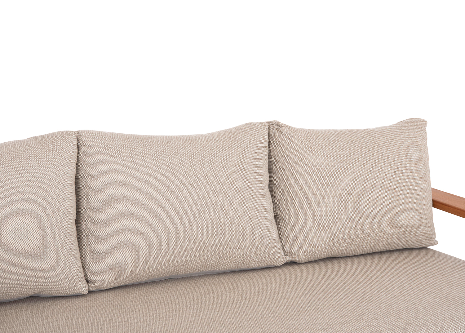 – Καλύμματα μαξιλαριών: OLEFIN υδατοαπωθητικό (πολυεστερικό) ύφασμα ειδικό για εξωτερική χρήση (με φερμουάρ για εύκολη αφαίρεση). Η ίνα olefin είναι μια συνθετική ίνα κατασκευασμένη από διάφορα πλαστικά υλικά. Το ύφασμα που είναι κατασκευασμένο από αυτή την ίνα είναι ισχυρό, δεν ξεβάφει, και είναι ανθεκτικό στην μούχλα, την τριβή και το ηλιακό φως, επειδή διαθέτει προστασία από την υπεριώδη ακτινοβολία που προστίθεται στη διαδικασία κατασκευής. Τα πιο σημαντικά χαρακτηριστικά, ωστόσο, είναι ότι είναι αδιάβροχο και ανθεκτικό στους λεκέδες (αλέκιαστο).