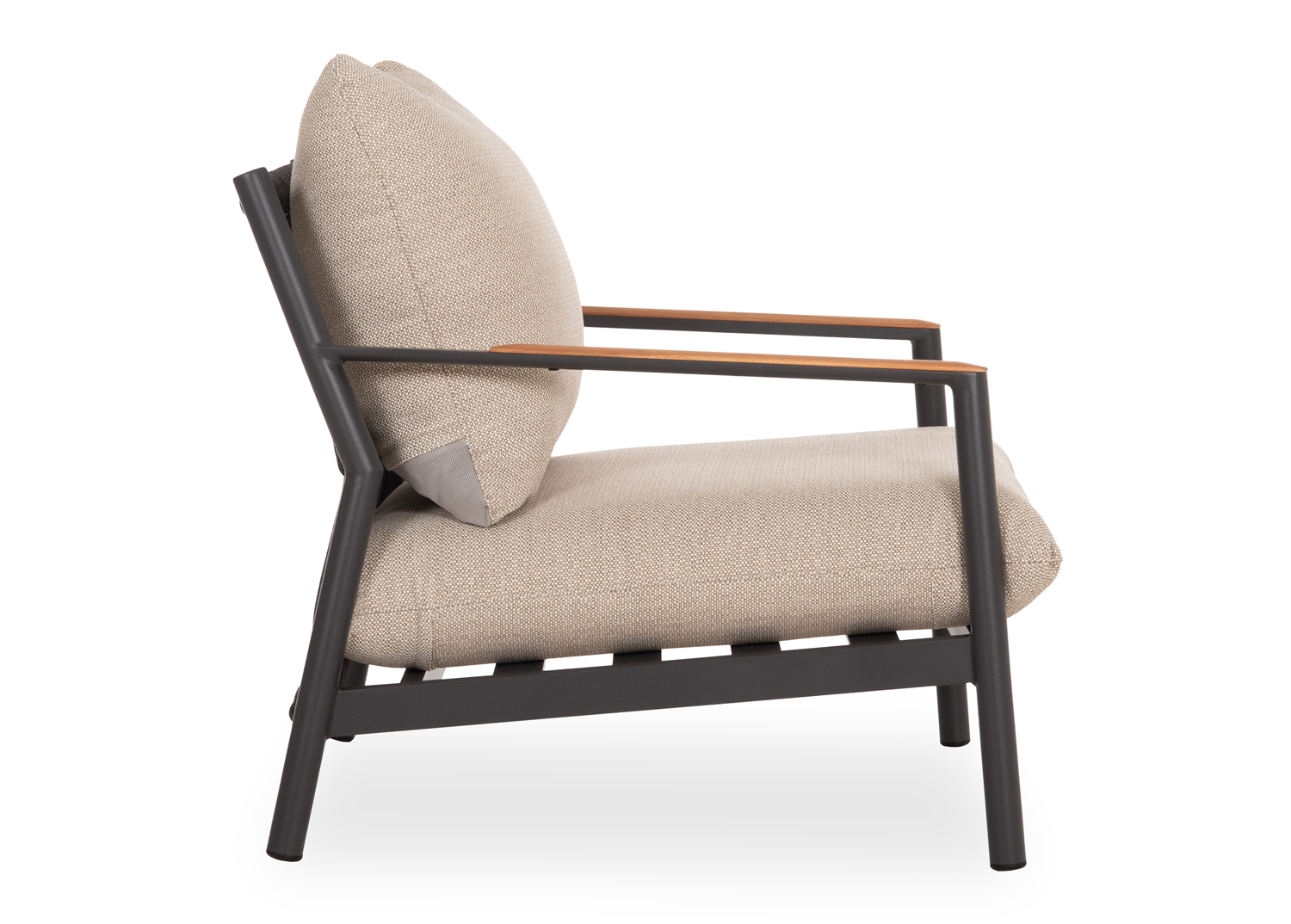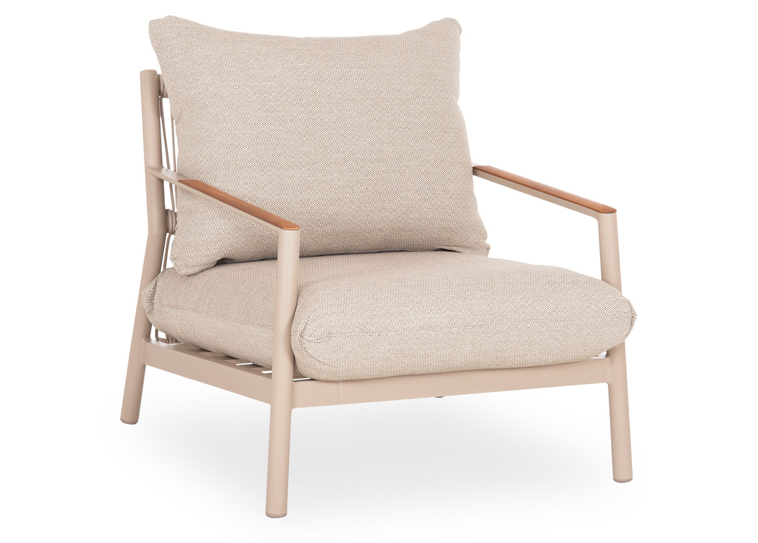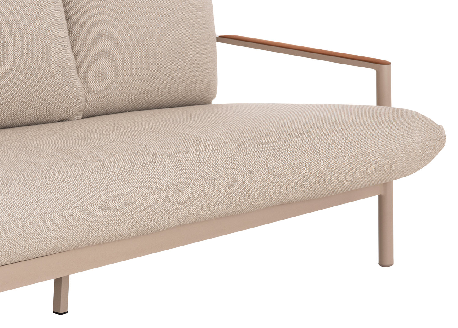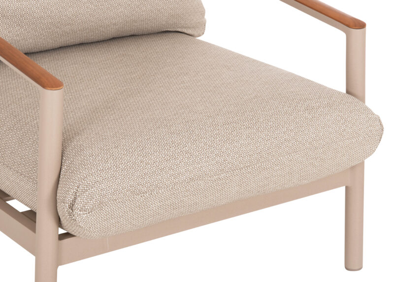 – Καλύμματα μαξιλαριών: OLEFIN υδατοαπωθητικό (πολυεστερικό) ύφασμα ειδικό για εξωτερική χρήση (με φερμουάρ για εύκολη αφαίρεση). Η ίνα olefin είναι μια συνθετική ίνα κατασκευασμένη από διάφορα πλαστικά υλικά. Το ύφασμα που είναι κατασκευασμένο από αυτή την ίνα είναι ισχυρό, δεν ξεβάφει, και είναι ανθεκτικό στην μούχλα, την τριβή και το ηλιακό φως, επειδή διαθέτει προστασία από την υπεριώδη ακτινοβολία που προστίθεται στη διαδικασία κατασκευής. Τα πιο σημαντικά χαρακτηριστικά, ωστόσο, είναι ότι είναι αδιάβροχο και ανθεκτικό στους λεκέδες (αλέκιαστο).