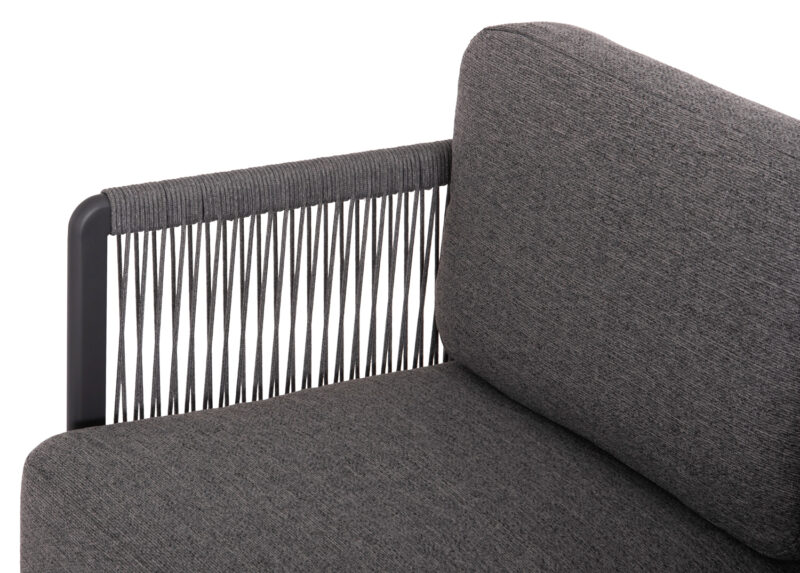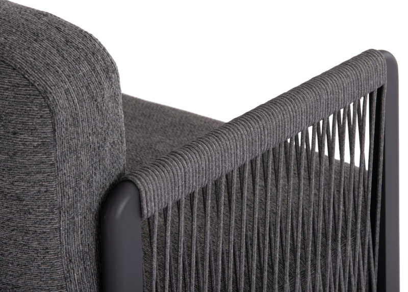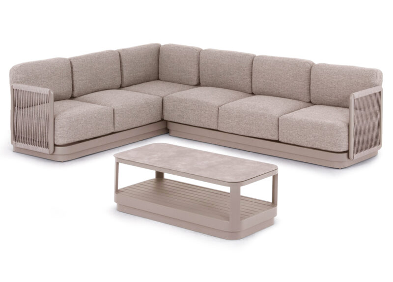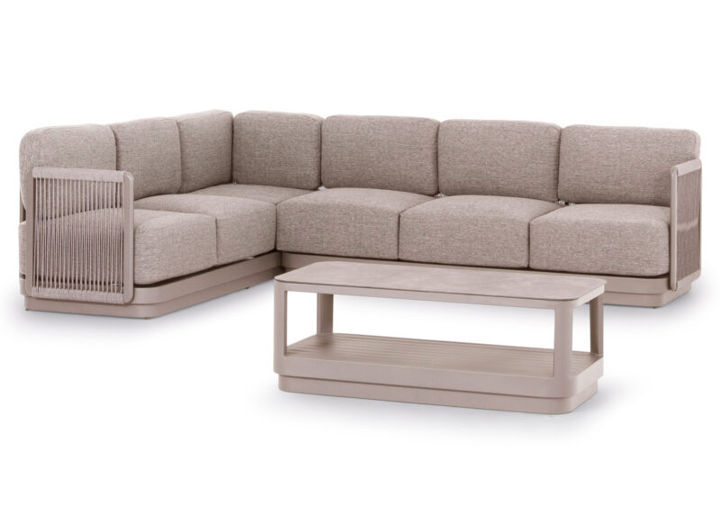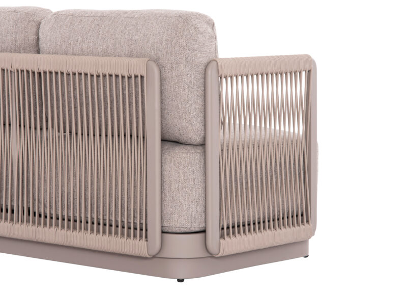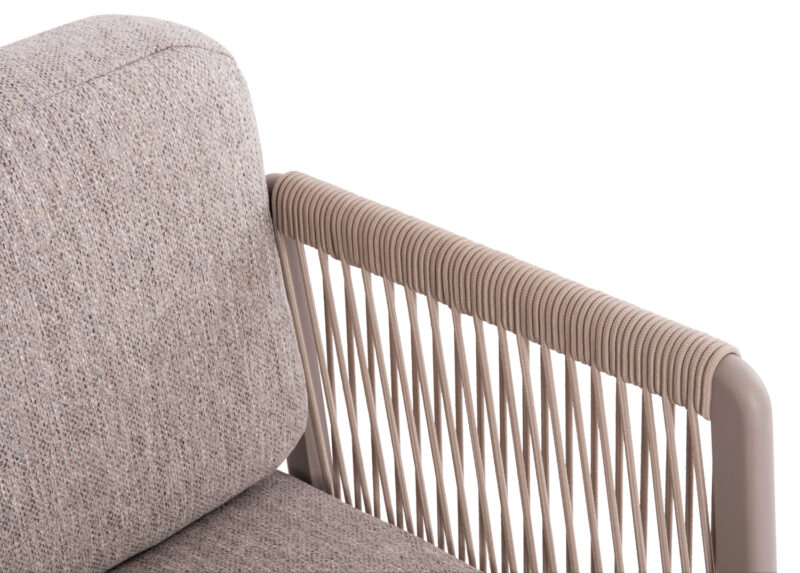 Η σειρά ELYSIA, ήρθε και με την απλότητά της σε συνδυασμό με την απαράμιλλη ποιότητα των υλικών της και του φινιρίσματός της, αλλάζει τα δεδομένα στην κατηγορία. Αυτή η σύνθεση γωνίας αποτελείται από δύο 3-θέσιους καναπέδες (ένας καναπές με ένα μόνο μπράτσο, και ο άλλος με ένα μπράτσο από τα δύο σε μορφή μαξιλαριού) και ένα τραπεζάκι. Ο σκελετός είναι από αλουμίνιο σε σαμπανί ή σκούρο γκρι χρώμα με μαξιλάρια σε ίδιο χρώμα. Το πολυεστερικό ύφασμα, το ΑΝΟΙΧΤΟ ΓΚΡΙ σχοινί στα μπράτσα αλλά και η αλουμινένια επιφάνεια στο τραπεζάκι με την όψη ανοιχτόχρωμης πέτρας απογειώνουν ποιοτικά όλη την σύνθεση! Η αισθητική και το μοναδικό φινίρισμα κάθε σπιθαμής αυτού του σετ, θα σας κάνουν απλά να απολαμβάνετε την κάθε στιγμή! Πέρα από τακτικό ξεσκόνισμα, μπορείτε να χρησιμοποιείτε ένα υγρό πανί. Μην χρησιμοποιείτε χημικά καθαριστικά.