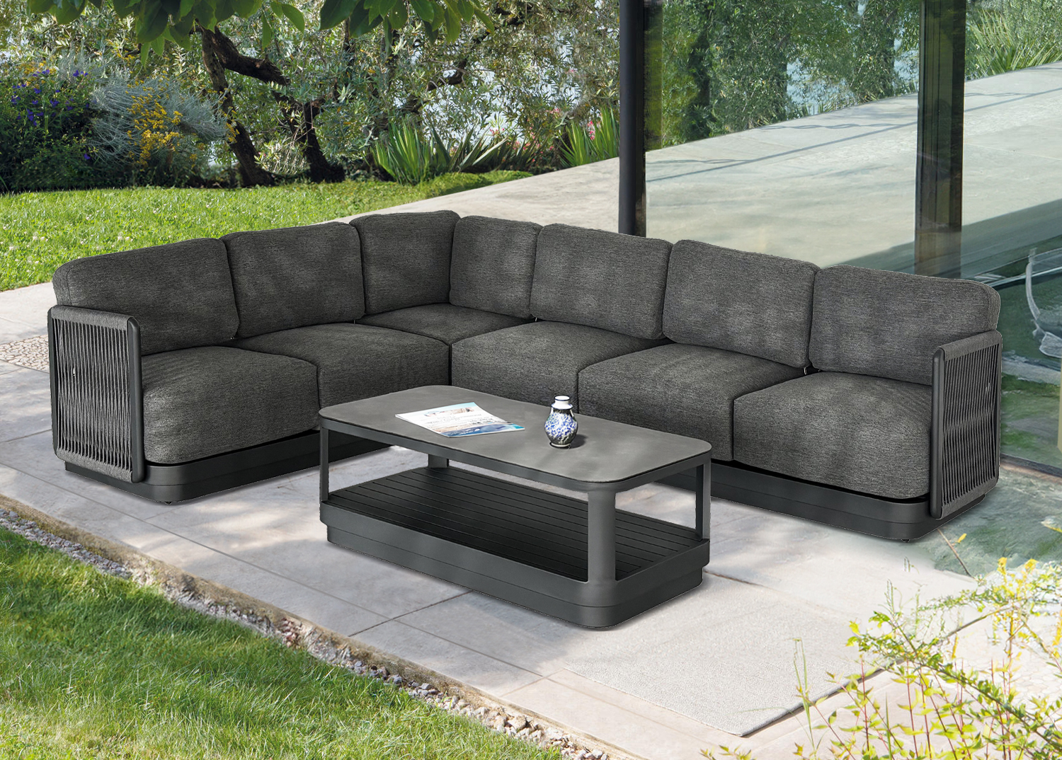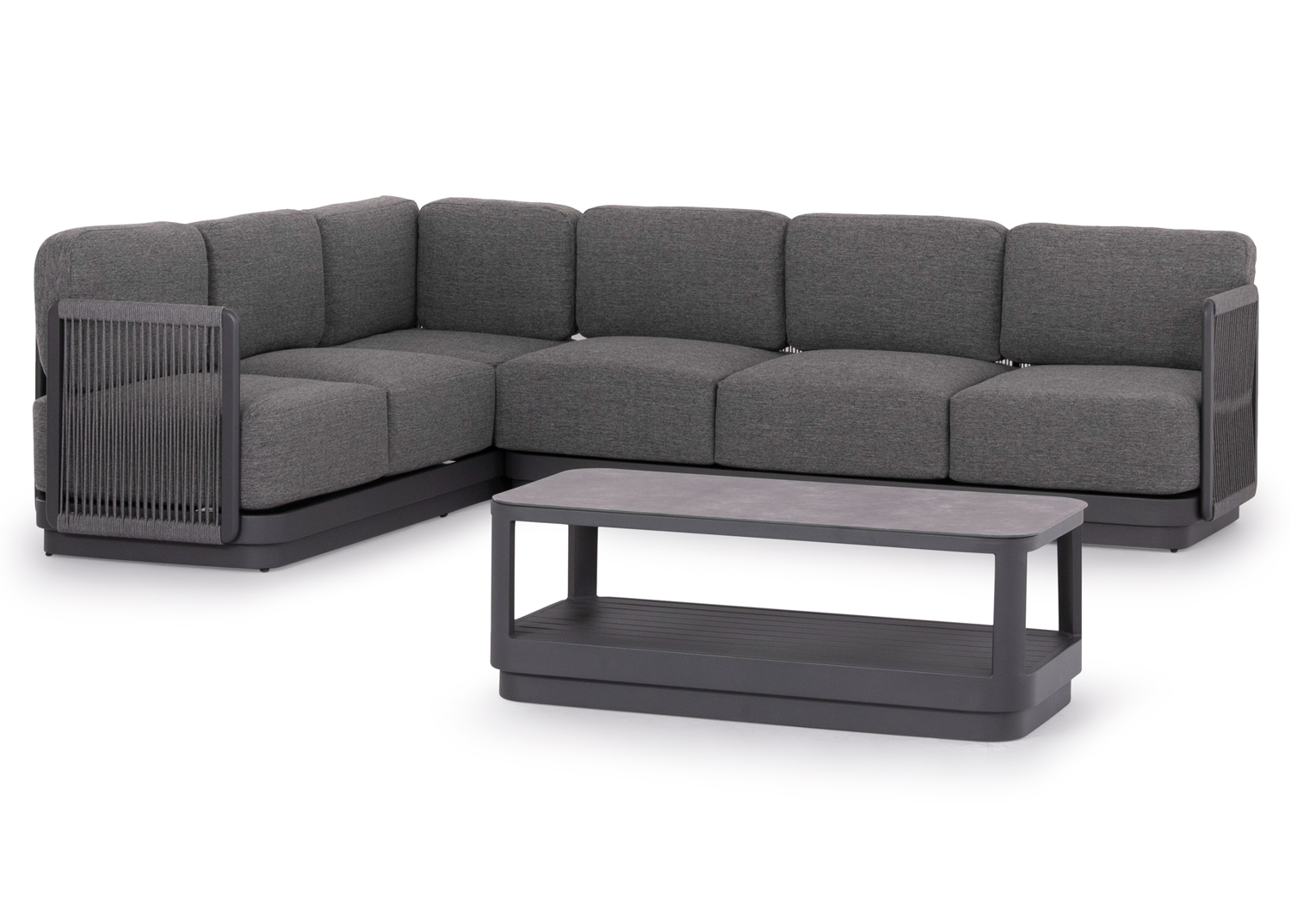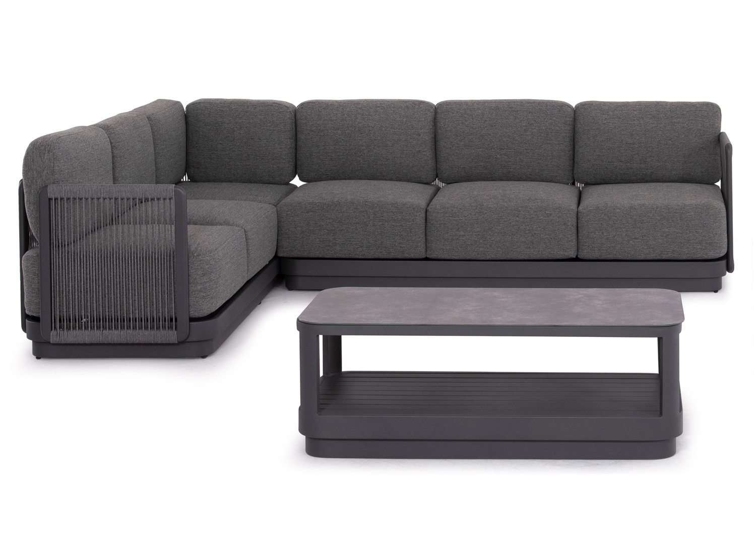 Η σειρά ELYSIA, ήρθε και με την απλότητά της σε συνδυασμό με την απαράμιλλη ποιότητα των υλικών της και του φινιρίσματός της, αλλάζει τα δεδομένα στην κατηγορία. Αυτή η σύνθεση γωνίας αποτελείται από δύο 3-θέσιους καναπέδες (ένας καναπές με ένα μόνο μπράτσο, και ο άλλος με ένα μπράτσο από τα δύο σε μορφή μαξιλαριού) και ένα τραπεζάκι. Ο σκελετός είναι από αλουμίνιο σε σαμπανί ή σκούρο γκρι χρώμα με μαξιλάρια σε ίδιο χρώμα. Το πολυεστερικό ύφασμα, το ΑΝΟΙΧΤΟ ΓΚΡΙ σχοινί στα μπράτσα αλλά και η αλουμινένια επιφάνεια στο τραπεζάκι με την όψη ανοιχτόχρωμης πέτρας απογειώνουν ποιοτικά όλη την σύνθεση! Η αισθητική και το μοναδικό φινίρισμα κάθε σπιθαμής αυτού του σετ, θα σας κάνουν απλά να απολαμβάνετε την κάθε στιγμή! Πέρα από τακτικό ξεσκόνισμα, μπορείτε να χρησιμοποιείτε ένα υγρό πανί. Μην χρησιμοποιείτε χημικά καθαριστικά.