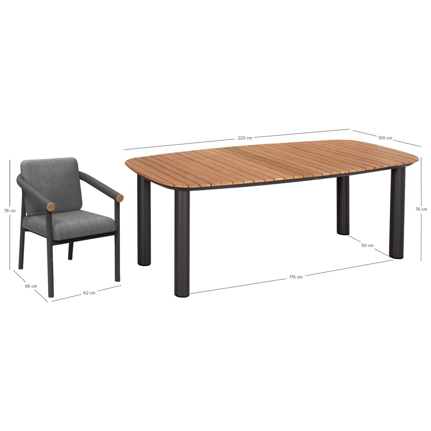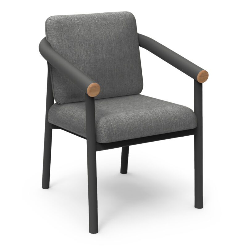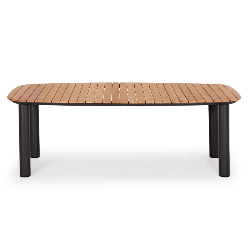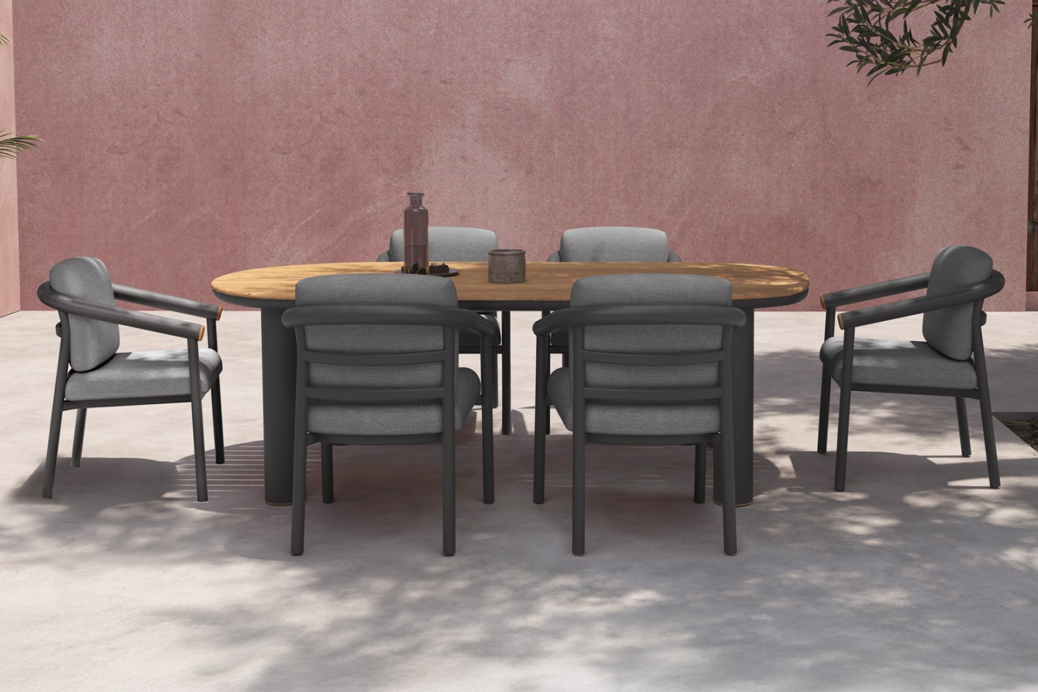 Αυτό το σετ τραπεζαρίας για κάθε εξωτερικό χώρο αποτελείται από ένα ορθογώνιο τραπέζι και 6 πολυθρόνες της σειράς EUTOPIA. Το τραπέζι έχει ελαφρώς κυρτές πλευρές με σκελετό αλουμινίου σε ΣΚΟΥΡΗ ΓΚΡΙ απόχρωση και επιφάνεια από ξύλο teak σε ΦΥΣΙΚΟ χρώμα. Οι πολυθρόνες διαθέτουν μαξιλάρια από ύφασμα olefin κατάλληλο για εξωτερικούς χώρους. Η σειρά EUTOPIA ήρθε για να φέρει στο προσκήνιο την ασύγκριτη ποιότητα υλικών σε συνδυασμό με την όμορφη αισθητική.