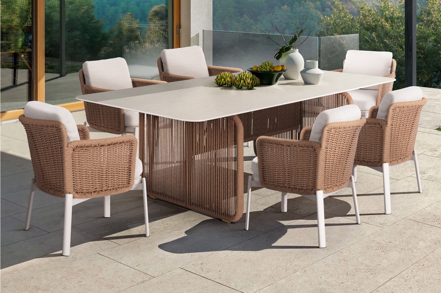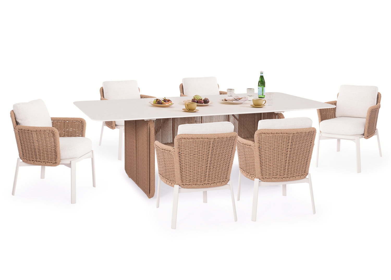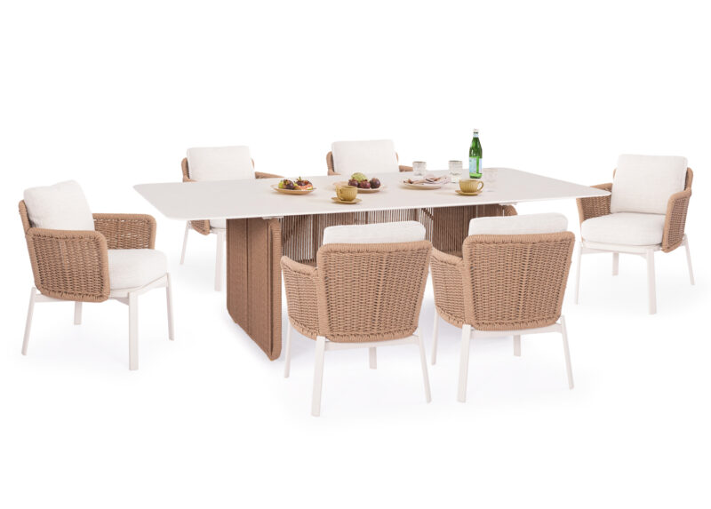 Η SYMETRON μεταμορφώνει τον εξωτερικό σας χώρο με το νέο σετ τραπεζαρίας 6 θέσεων DESTINY! Ο πήχης της ποιότητας και της αισθητικής ανεβαίνει αφού το DESTINY συνδυάζει υπέροχα την πρακτικότητα με την πολυτέλεια. Αποτελείται από ένα μεγάλο ορθογώνιο τραπέζι και 6 αναπαυτικές πολυθρόνες τραπεζαρίας. Πέρα από τακτικό ξεσκόνισμα, μπορείτε να καθαρίζετε την επιφάνεια με ένα υγρό πανί, ακόμα και με διάφορα καθαριστικά από τα πολλά που κυκλοφορούν στην αγορά, αρκεί να μην περιέχουν χημικά συστατικά.