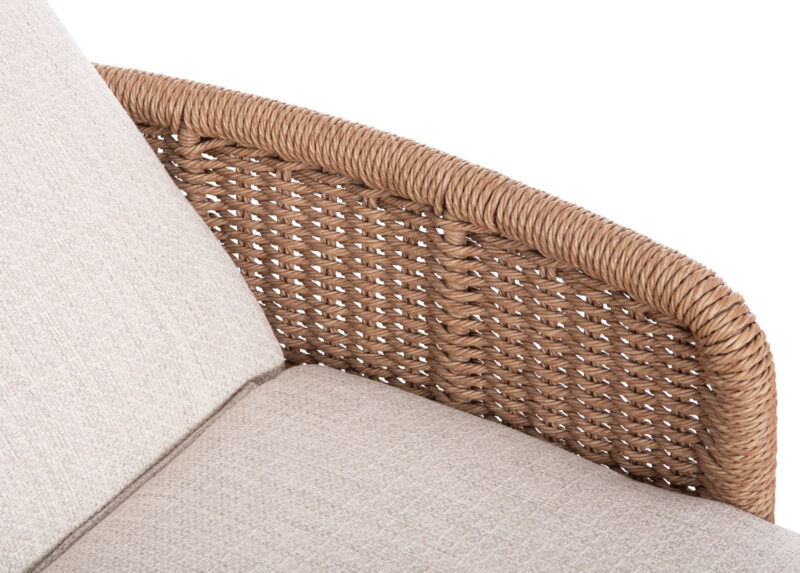 -Η επένδυση στα μπράτσα έχει γίνει με φυσικό wicker/rattan. Το Rattan είναι το καλύτερο και το πιο ευρέως χρησιμοποιούμενο φυσικό υλικό για πλεκτές κατασκευές, όπως wicker κτλ. Wicker ονομάζεται η τεχνική πλέξης του Rattan, κατά την οποία οι τεχνίτες περνούν το φυσικό υλικό από ατμό και στη συνέχεια το λυγίζουν στο σχήμα που θέλουν.