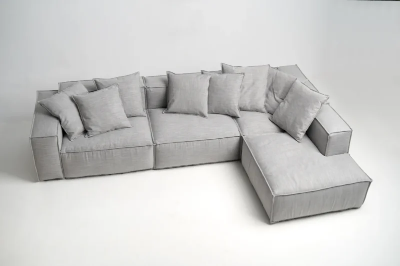 Σαλόνι γωνιακό υψηλής αισθητικής. Υλικά καθίσματος από latex special και πλάτη latex. Παράγεται και με πούπουλο κάθισμα κατόπιν επιλογής σας.Τα εσωτερικά σκελετά είναι όλα κατασκευασμένα από μασίφ ξύλο οξιάς. Τα υφάσματα αλλάζουν σύμφωνα με τις προτιμήσεις σας, οι διαστάσεις προσαρμόζονται με βάση τις ανάγκες του χώρου σας.
