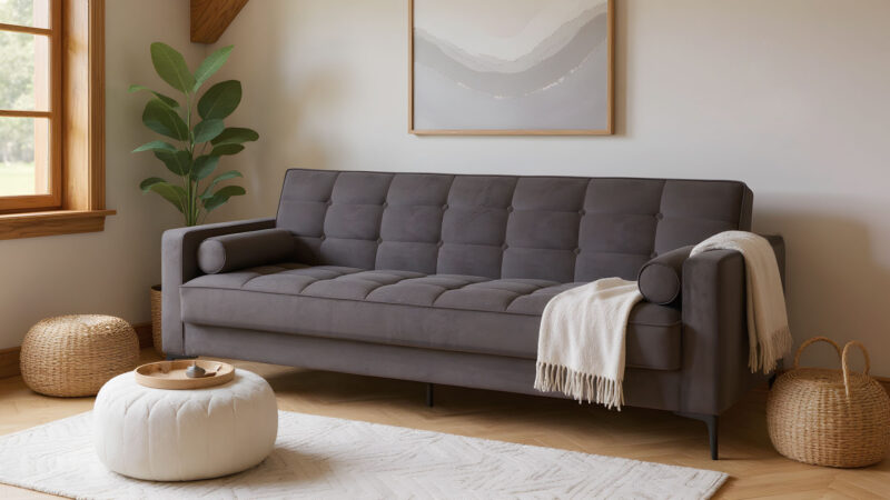 - Λειτουργικότητα: Όπως σωστά ανέφερες, η πλάτη του πέφτει και μετατρέπεται εύκολα σε κρεβάτι, συνήθως με μηχανισμό click-clack, ιδανικό για φιλοξενία καλεσμένων.