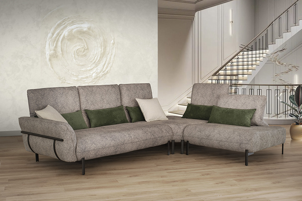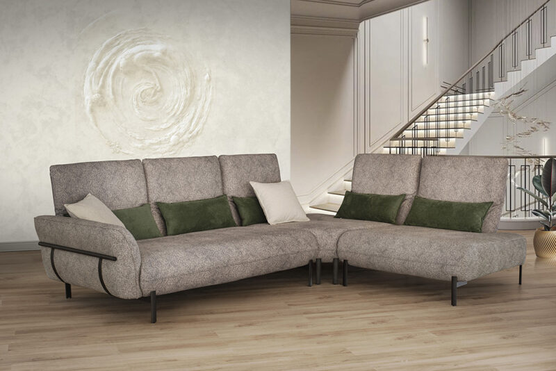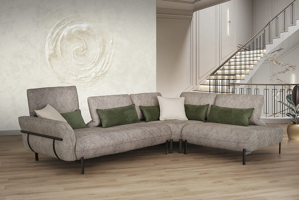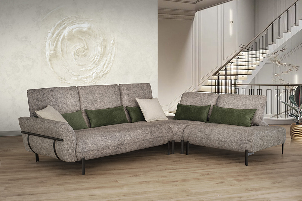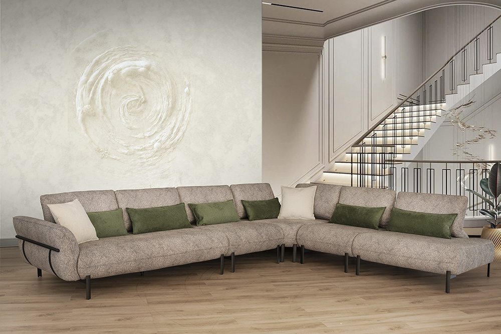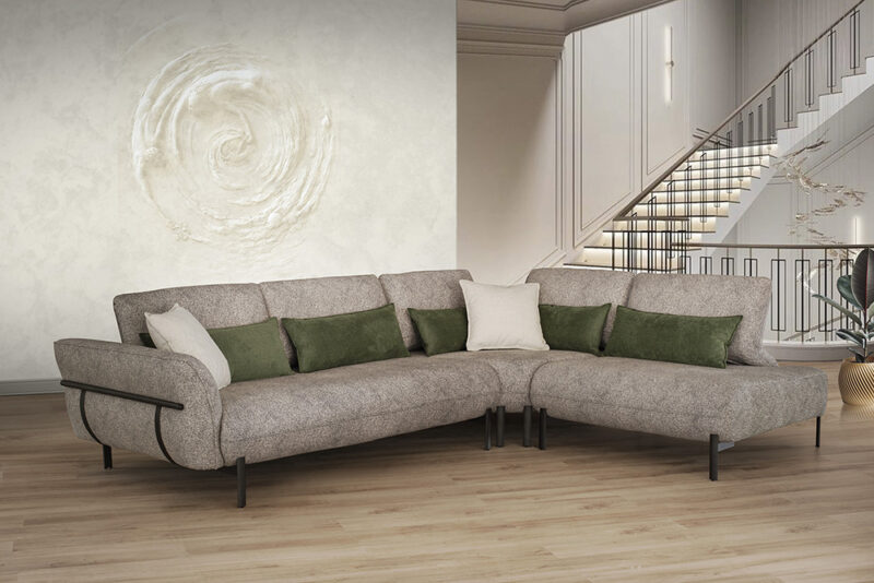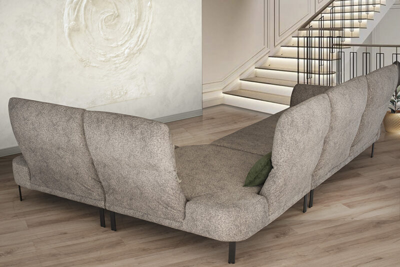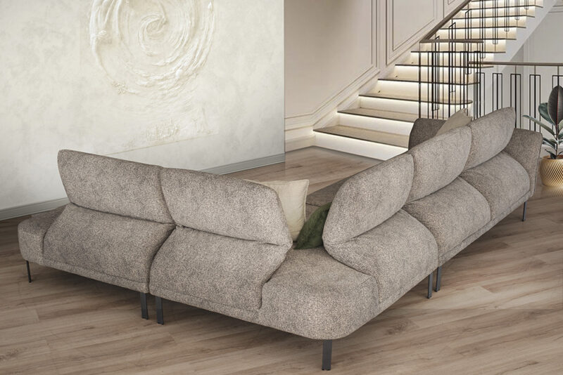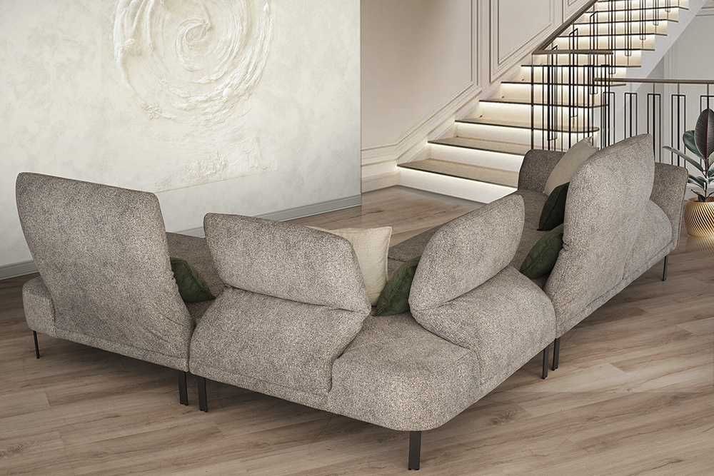 Ένας γωνιακός καναπές που ξεφεύγει από τα συνηθισμένα, σχεδιασμένος για να προσφέρει απόλυτη άνεση μέσα από μια ιδιαίτερη, αρχιτεκτονική προσέγγιση. Η φάλτσο σχεδιασμένη γωνία διαφοροποιείται από τις κλασικές ορθές γωνίες, επιτρέποντας σωστή στάση σώματος και φυσική τοποθέτηση σε κάθε θέση καθίσματος, δημιουργώντας μια πιο λειτουργική και φιλόξενη εμπειρία.