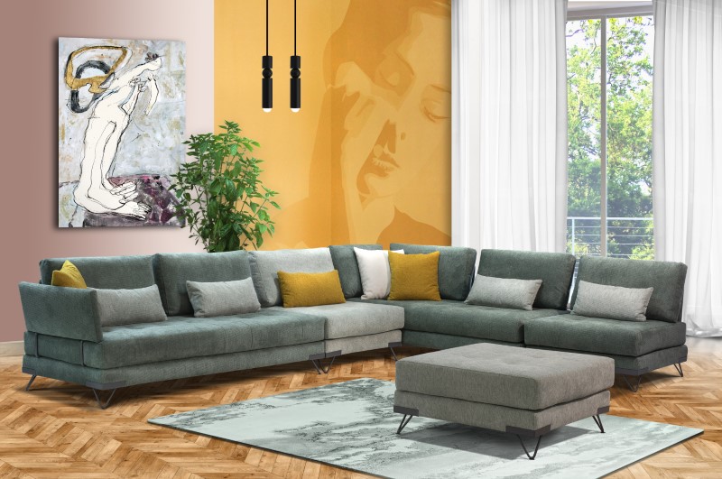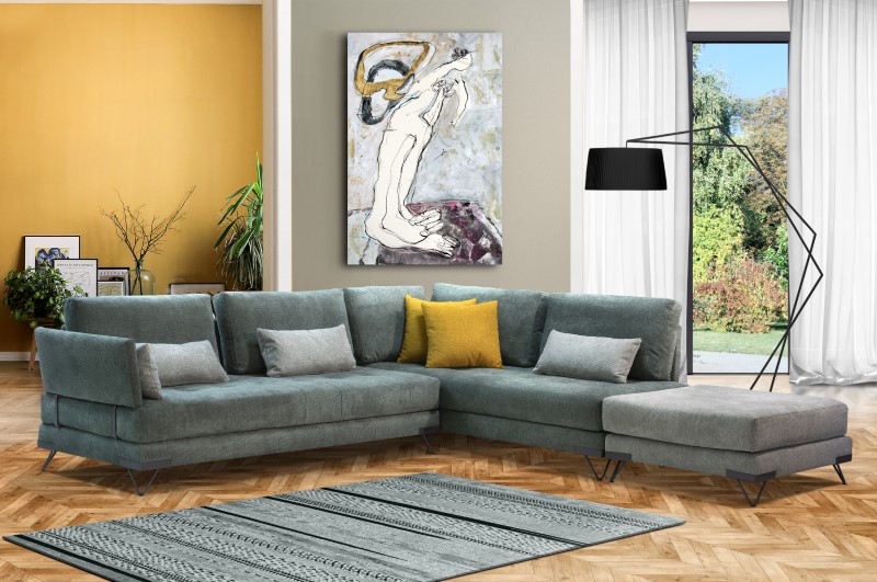 Σαλόνι γωνιακό πολυμορφικό. Ξύλινη πρόσοψη του σαλονιού σε δρυς ξύλο. Υλικά καθίσματος από latex special και πλάτη latex Με πούπουλο.Τα εσωτερικά σκελετά είναι όλα κατασκευασμένα από μασίφ ξύλο οξιάς. Τα υφάσματα αλλάζουν σύμφωνα με τις προτιμήσεις σας, οι διαστάσεις προσαρμόζονται με βάση τις ανάγκες του χώρου σας.