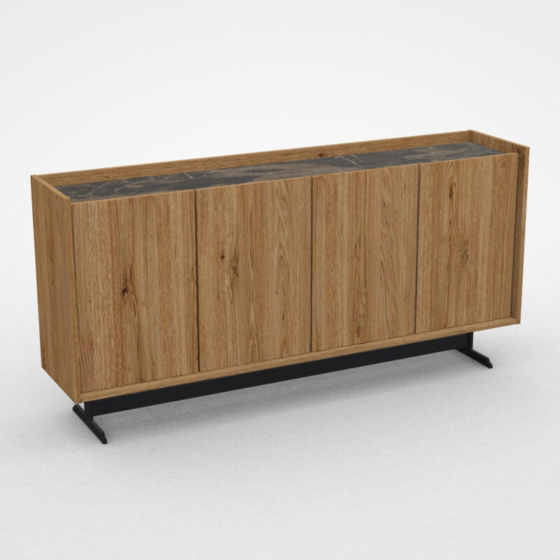 Μπουφές σε ίσιες γραμμές, κατασκευασμένος από δρυς . Η επιφάνεια μπορεί
