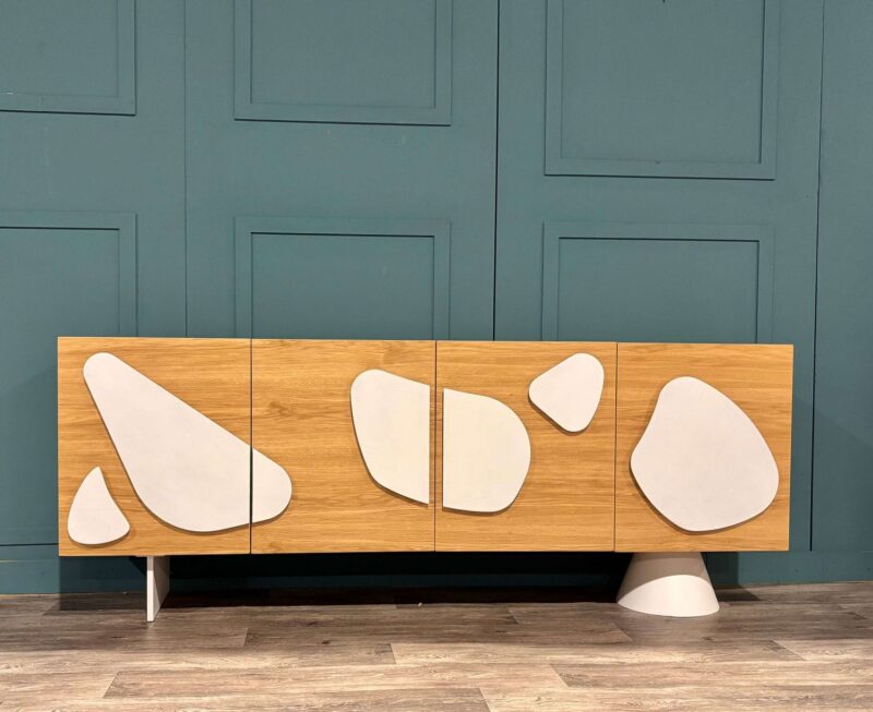 Μπουφές με σύγχρονο σχεδιασμό, που συνδυάζει δρυς με λάκα σε ένα