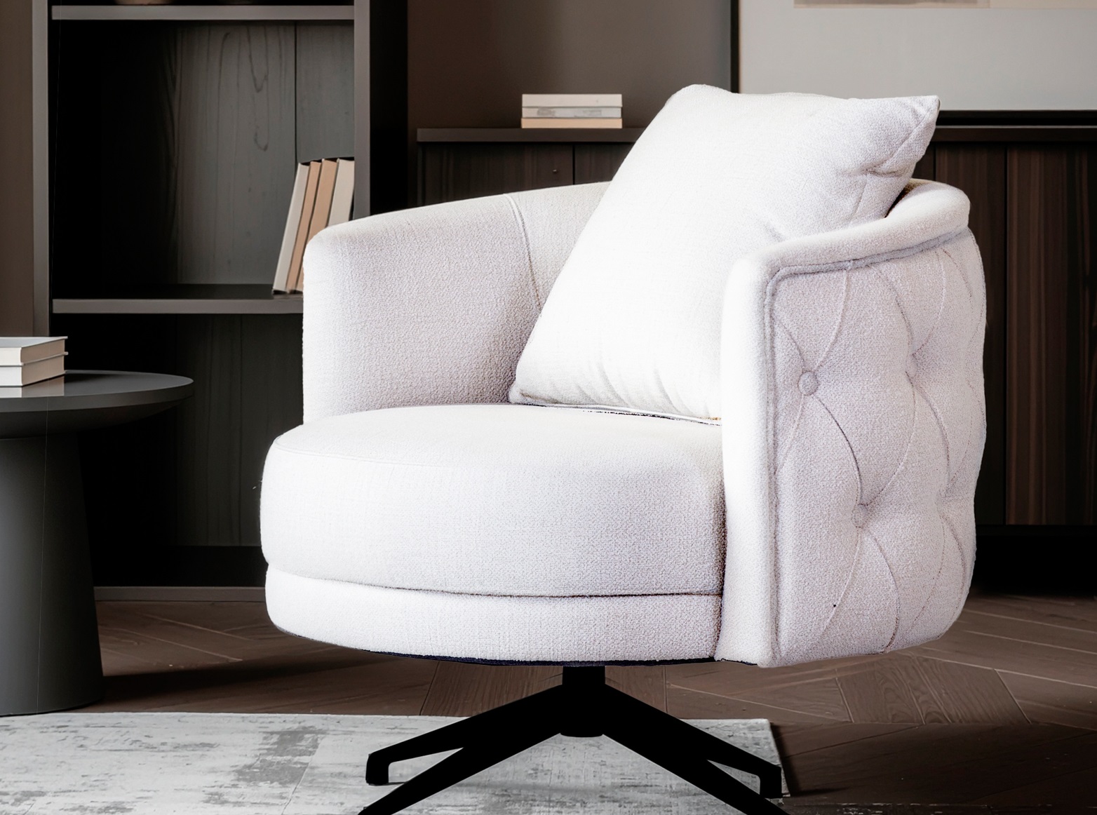 ΠΟΛΥΘΡΟΝΑ LADY ΠΟΛΥΘΡΟΝΑ LADY Πολυθρόνα με περιστρεφόμενο κάθισμα και καπιτονέ πλάτη. Διαθέσιμοι χρωματισμοί γκρι και μπεζ. 85*85 διάσταση ΕΠΙΚΟΙΝΩΝΗΣΤΕ ΜΑΖΙ ΜΑΣ GALLERY 85*85