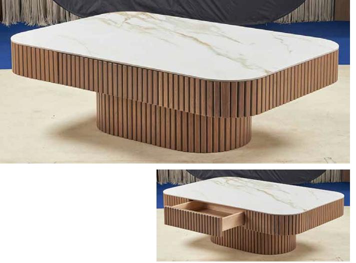 - Υλικά: Βάση από φυσικό ξύλο δρυός και επιφάνεια με κεραμική επένδυση (όψη μαρμάρου).