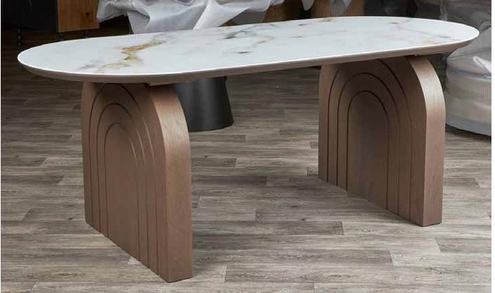 Ένα έργο που ισορροπεί ανάμεσα στη μοντέρνα τέχνη και την λειτουργικότητα. Το κύριο χαρακτηριστικό του είναι οι επιβλητικές βάσεις σε σχήμα αψίδας, οι οποίες προσδίδουν κύρος και μοναδικό χαρακτήρα τόσο στην τραπεζαρία όσο και στο τραπεζάκι σαλονιού του σετ.