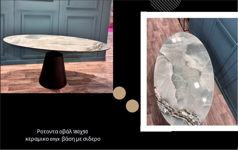 ΤΡΑΠΕΖΑΡΙΑ LUCE ΤΡΑΠΕΖΑΡΙΑ LUCE Τραπεζαρία οβάλ 180*90 με κεραμική επιφάνεια και μεταλλική κεντρική βάση. ΕΠΙΚΟΙΝΩΝΗΣΤΕ ΜΑΖΙ ΜΑΣ GALLERY 180*90 Δυνατότητα αλλαγής διαστάσεων