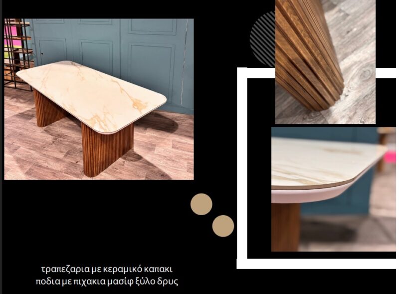 ΤΡΑΠΕΖΑΡΙΑ ROMA ΤΡΑΠΕΖΑΡΙΑ ROMA Τραπεζαρία με κεραμική επιφάνεια και βάση σε δρυς φυσικό. Επιδέχεται αλλαγές σε διαστάσεις τόσο και σε χρωματικές αλλαγές. Για περισσότερες πληροφορίες επικοινωνήστε μαζί μας. ΕΠΙΚΟΙΝΩΝΗΣΤΕ ΜΑΖΙ ΜΑΣ GALLERY Δυνατότητα αλλαγής διαστάσεων