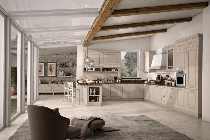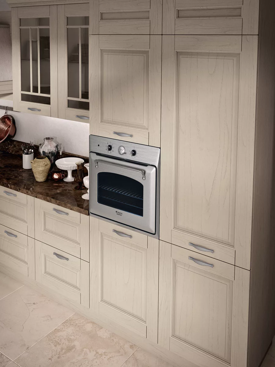 Στην “Bilbao 03″, το ξύλο αποκτά μια κλασική αίσθηση, αφηγούμενο μια μοναδικά ιταλική ιστορία που καθιστά αυτή την εκδοχή μια κουζίνα παραδοσιακού στιλ. Μια κλασική κουζίνα όπου όλα είναι τέλεια συντονισμένα, επιτυγχάνοντας μια ισορροπία μεταξύ αισθητικής και λειτουργικότητας. Μια εντυπωσιακή σύνθεση που περιλαμβάνει μια περιοχή μαγειρέματος με απορροφητήρα, ντουλάπια τοίχου που μπορούν να εξοπλιστούν με ράφια και μια χερσόνησο, έναν πρακτικό πάγκο εργασίας που λειτουργεί και ως χώρος χαλάρωσης για ανάγνωση, φαγητό ή συζήτηση. Μια κουζίνα κλασικού στιλ για όσους εκτιμούν την ομορφιά χωρίς να είναι υπερβολικοί