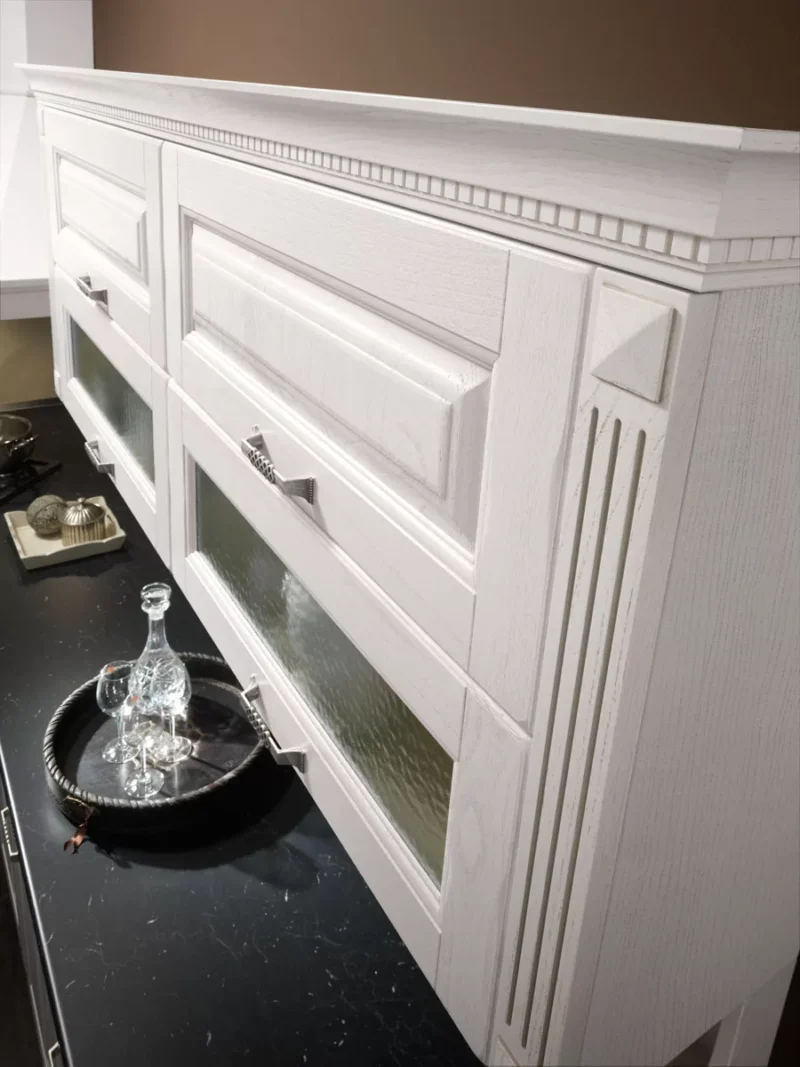 Η Bilbao 05 είναι μια νέα τάση, μια επιστροφή στην απλότητα, η ευχαρίστηση να λες ναι στην παράδοση και να κάνεις ένα διάλειμμα από τη νεωτερικότητα. Είναι να βρίσκεις τον εαυτό σου να μεγαλώνει στην εξοχή αυτό που θα γίνει τα συστατικά των συνταγών σου. Η Bilbao είναι ένας σύντροφος, πάντα ένας σύμμαχος στην ανανέωση της ευχαρίστησης της ευθυμίας, με το κλασικό και κομψό της στυλ. Η ιταλική παράδοση ζει σε αυτή την κουζίνα με μια ισχυρή προσωπικότητα, που ξεπερνά τις τάσεις και αντέχει στο χρόνο. Είναι εμφανής στον μεγάλο απορροφητήρα με το διακοσμημένο πλαίσιό του, στα ντουλάπια τοίχου με γυάλινες πόρτες που κρύβουν τις συσκευές, στα μεγάλα ντουλάπια και φυσικά στην επιλογή του λευκού που αναδεικνύει τα νερά και φωτίζει τον χώρο. Ένα συνθετικό σχέδιο που δίνει έμφαση στην πρακτικότητα, για να απλοποιήσει εργονομικά τις καθημερινές εργασίες.