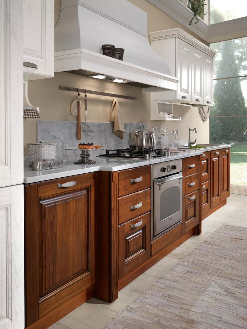 Η κουζίνα Bilbao 07 είναι μια κλασική, αρθρωτή κουζίνα, ικανή να πραγματοποιήσει ένα όνειρο, ένα σπίτι, μια οικογένεια: μια ιστορία που αλλάζει συνεχώς, βυθισμένη σε αναμνήσεις και παράδοση. Η Bilbao επαναπροσδιορίζει το παραδοσιακό μοντέλο κουζίνας εμπνευσμένο από την Ιταλία του 19ου αιώνα, ενσαρκώνοντας τον παλμό μιας οικογένειας. Αυτή η ατμόσφαιρα ενισχύεται περαιτέρω από την επιλογή της καρυδιάς, η οποία μεταφέρει μια εικόνα στιβαρότητας. Στην καρδιά αυτής της κουζίνας βρίσκεται ο μεγάλος απορροφητήρας-τζάκι, ο οποίος δεν είναι απλώς ένα λειτουργικό στοιχείο αλλά και ένα εντυπωσιακό κομμάτι. Και σε όλο τον χώρο μαγειρέματος, τα ντουλάπια βάσης και τοίχου χρησιμεύουν ως αποθηκευτικός χώρος. Μια διαχρονική κουζίνα με μοναδικό χαρακτήρα!
