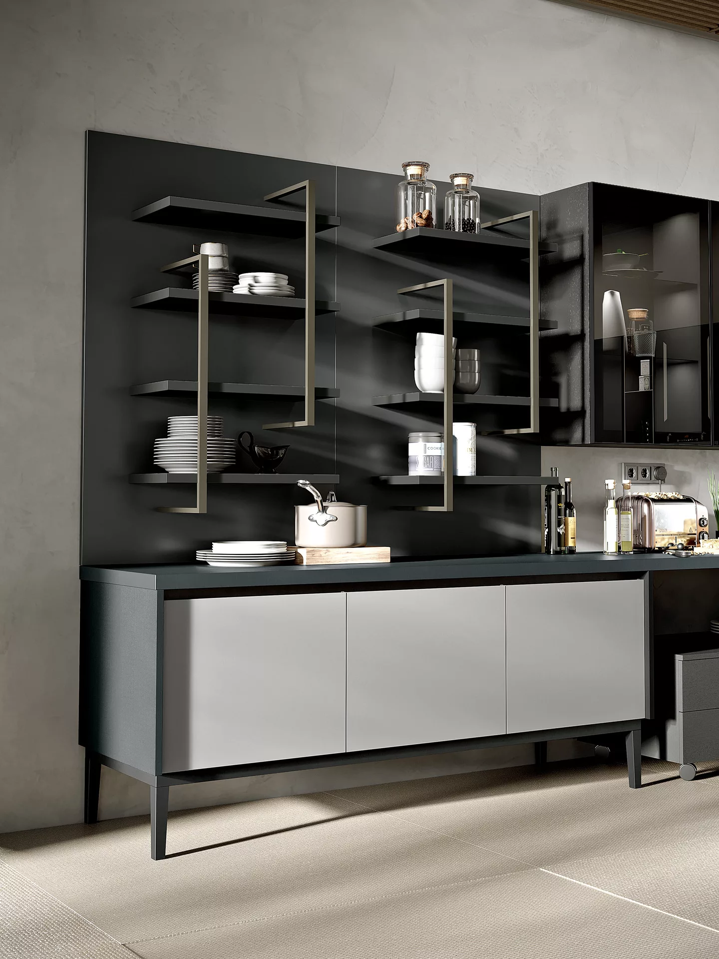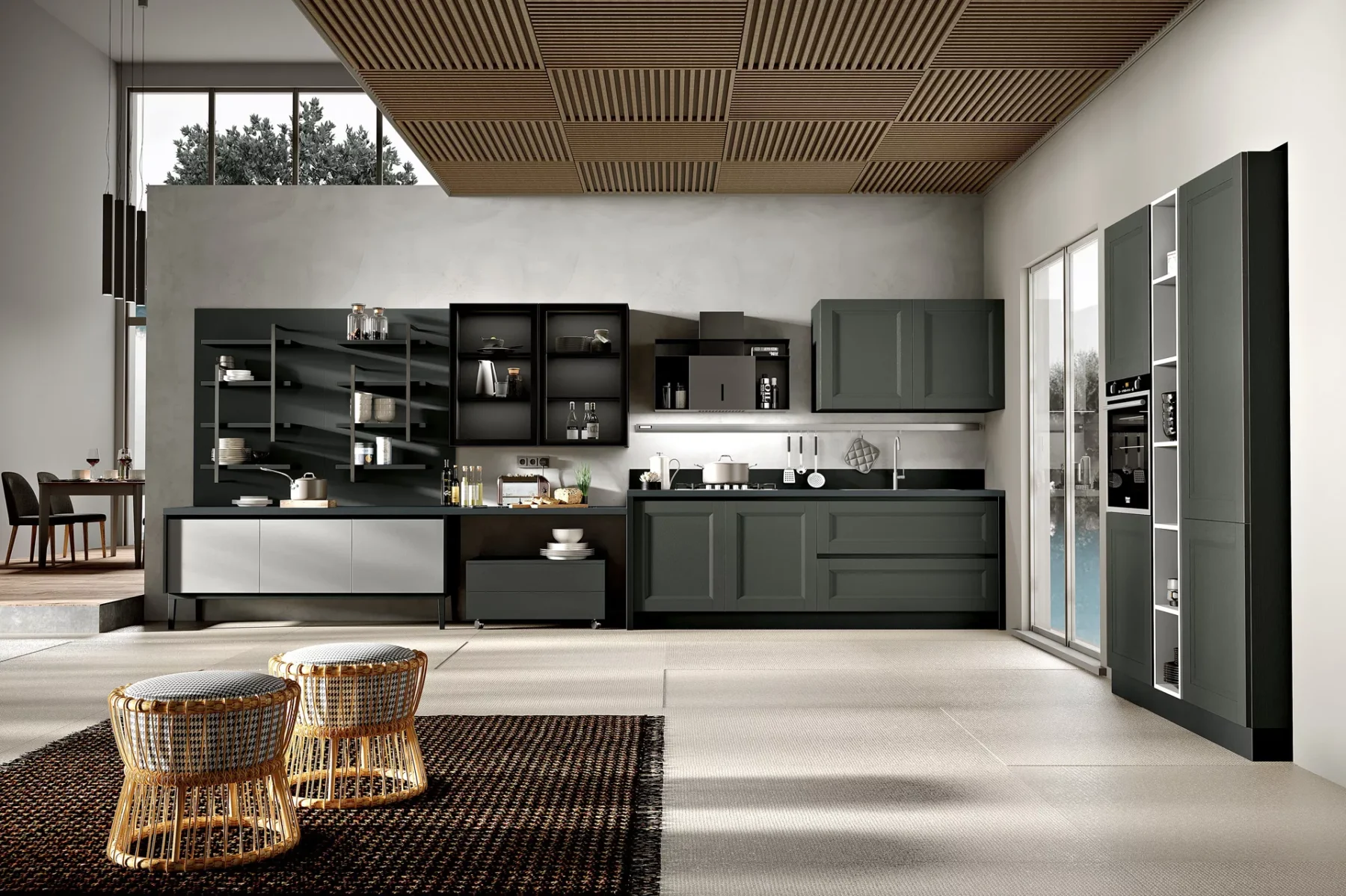 Merano 05 Χώρος που προσθέτει χώρο. Ένας καινοτόμος σχεδιασμός που επιπλώνει το σπίτι σας και ξεπερνά την απλή λειτουργικότητα. Με το Merano, ο χώρος προσθέτει περισσότερο χώρο: η μεγάλη νησίδα σάς επιτρέπει να διατηρείτε την επιφάνεια εργασίας σας καθαρή και τακτοποιημένη ενώ συμβουλεύεστε μια συνταγή ή πραγματοποιείτε μια βιντεοκλήση, με πρακτικά διαμερίσματα όπου μπορείτε πάντα να βρίσκετε αυτό που ψάχνετε.