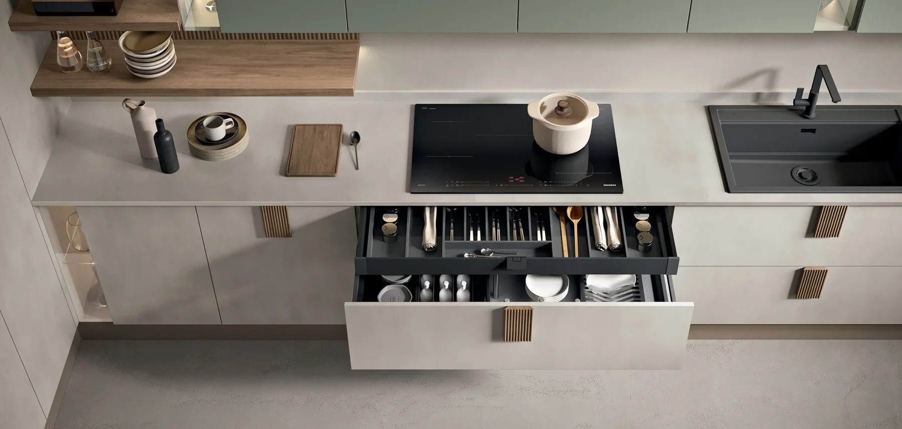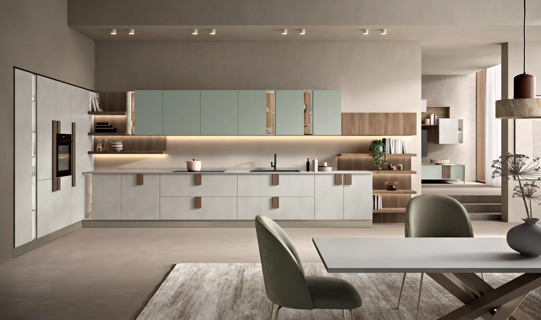 Η κουζίνα “Sky /1” έχει σχεδιαστεί για όσους αγαπούν τον τολμηρό χαρακτήρα του σύγχρονου design. Οι συμπαγείς επιφάνειες, η αλληλεπίδραση των όγκων και οι λιτές λαβές δημιουργούν μια εντυπωσιακή κουζίνα, ιδανική για μοντέρνα περιβάλλοντα και ανοιχτούς χώρους.