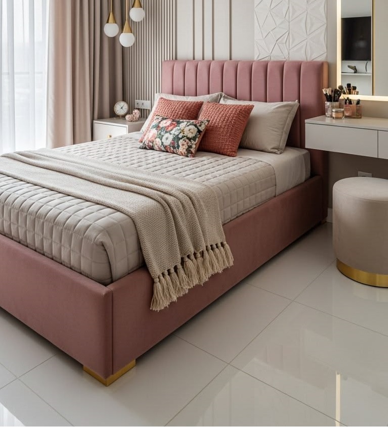 Ένα κομψό και διαχρονικό χειροποίητο κρεβάτι, σχεδιασμένο να προσφέρει άνεση, αισθητική και λειτουργικότητα σε παιδικά ή εφηβικά. Η ιδιαίτερη ταυτότητα του σχεδίου βρίσκεται στο υφασμάτινο κεφαλάρι με κάθετες ρίγες, που προσθέτει μοντέρνο χαρακτήρα και αρχιτεκτονική λεπτομέρεια στον χώρο.