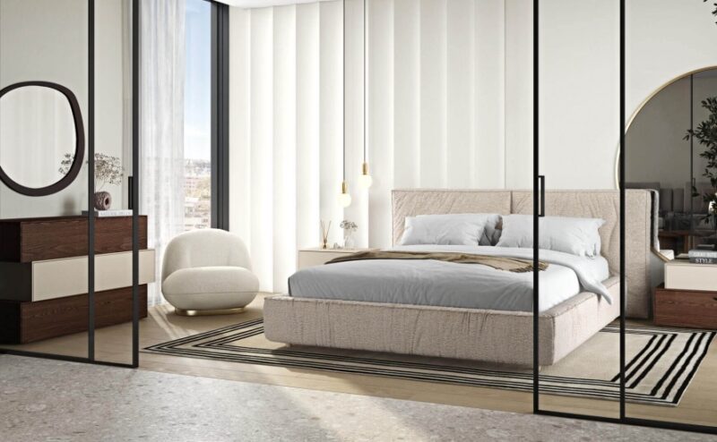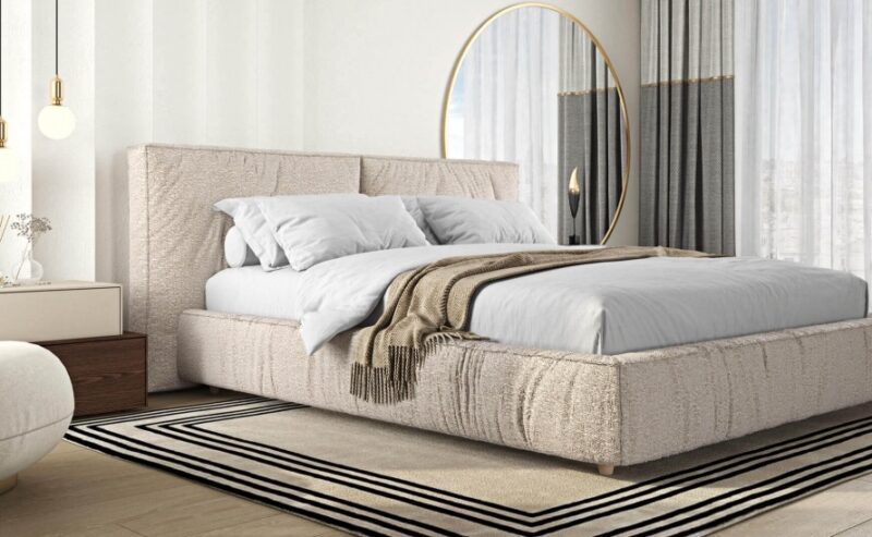 Ένα εντυπωσιακό, ντυμένο κρεβάτι, με ξύλινα πόδια και την ίδια όψη μπροστά-πίσω. Δυνατότητα προσθήκης φωτισμού Led περιμετρικά στη βάση του κρεβατιού με ή χωρίς ανιχνευτή κίνησης. Υπάρχει μηχανισμός ανύψωσης στρώματος για επιπλέον αποθηκευτικό χώρο. Διαθέσιμο σε ύφασμα της επιλογής σας. Τοποθετούνται ειδικά λάστιχα στις τραβέρσες, τα οποία αποτρέψουν τυχόν ανεπιθύμητα τριξίματα και βελτιώσουν τη στήριξη του στρώματος.