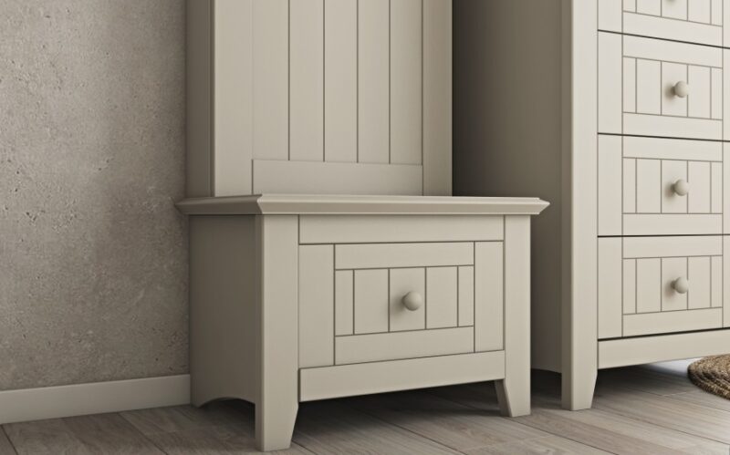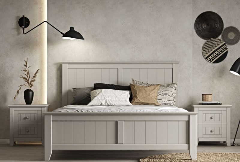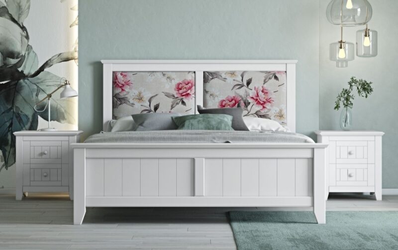 Το κρεβάτι είναι κατασκευασμένο από ξύλο MDF σε συνδυασμό με φυσικό ξύλο μασίφ. Διατίθεται σε διάφορα χρώματα λάκας ώστε να διαλέξετε το ιδανικό για τον χώρο σας. Όλα τα υλικά που χρησιμοποιούνται είναι υψηλών προδιαγραφών και εξαιρετικής αντοχής. Τα βερνίκια που χρησιμοποιούνται είναι οικολογικά και υποαλλεργικά. Υπάρχει η δυνατότητα επιλογής μιας ισορροπημένης και επιμελημένης αισθητικής, που δίνει μια ιδιαίτερη όψη παλαίωσης. Επίσης, μπορείτε να επιλέξετε να προστεθούν στο κεφαλάρι σταθερά ντυμένα μαξιλάρια με ύφασμα ή οικολογικό δέρμα, τα οποία καθαρίζουν εύκολα με νωπό μαλακό πανάκι. Το κρεβάτι είναι εξοπλισμένο με ειδικά λάστιχα προς αποφυγήν οποιουδήποτε τριξίματος αλλά και καλύτερη στήριξη του στρώματος. Διαθέτει μηχανισμού ανύψωσης στρώματος για επιπλέον αποθηκευτικό χώρο. Μπορεί να τοποθετηθεί προαιρετικός LED φωτισμός στην βαση του κρεβατιού και ανιχνευτής κίνησης, που θα δημιουργήσει ιδιαίτερη ατμόσφαιρα, με χαμηλή κατανάλωση.