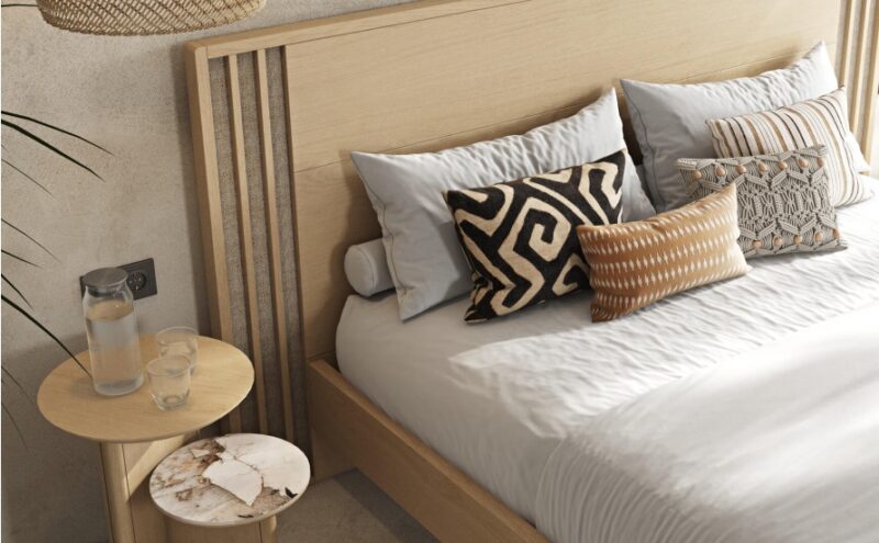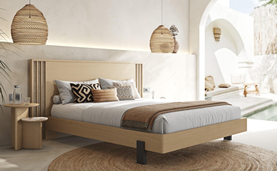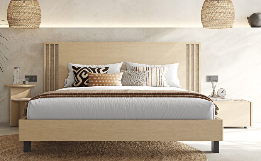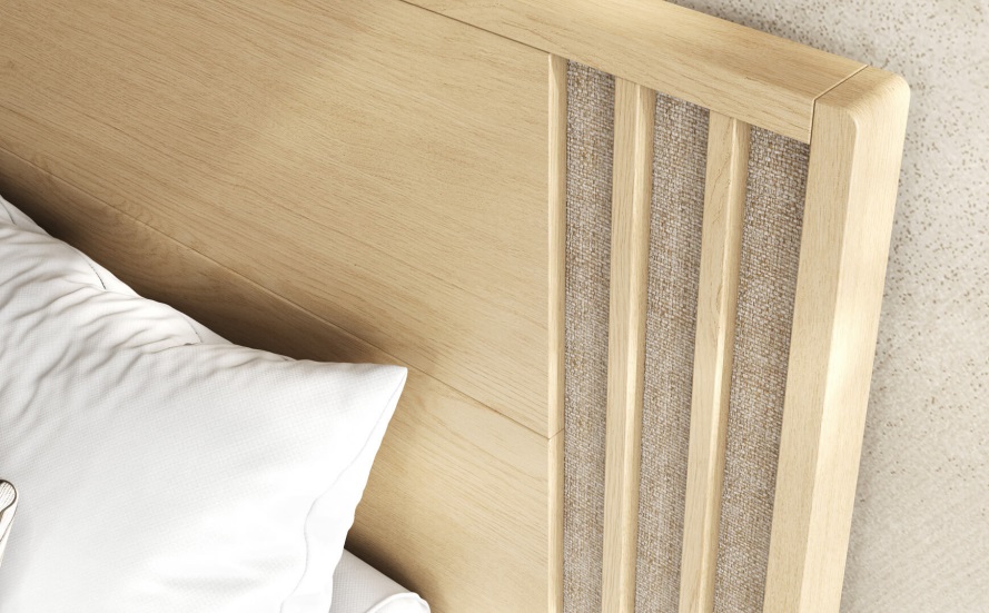 Κρεβάτι από ξύλο δρυς. Συνδυάζει μασίφ ξύλινες επιφάνειες και ψάθα στο κεφαλάρι. Μετατρέπεται εύκολα σε αποθηκευτικό χώρο προσθέτοντας ειδικό μηχανισμό. Επίσης, προσαρμόζεται LED φωτισμός στο κεφαλάρι και στη βάση. Το κρεβάτι είναι εξοπλισμένο με ειδικά λάστιχα προς αποφυγήν οποιουδήποτε τριξίματος και καλύτερης στήριξης του στρώματος. Διαθέτει μαξιλάρια για το κεφαλάρι.