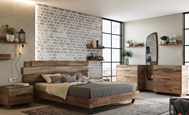 Το κρεβάτι είναι κατασκευασμένο από τεχνητό καπλαμά χρώματα, σε συνδυασμό με την ιδιαίτερη ανάγλυφη διακοσμητική επιφάνεια στο κεφαλάρι. Στηρίζεται σε ξύλινα λακαριστά πόδια graphite grey χρώματος, αλλά υπάρχει και η δυνατότητα προσθήκης μεταλλικής βάσης στήριξης.