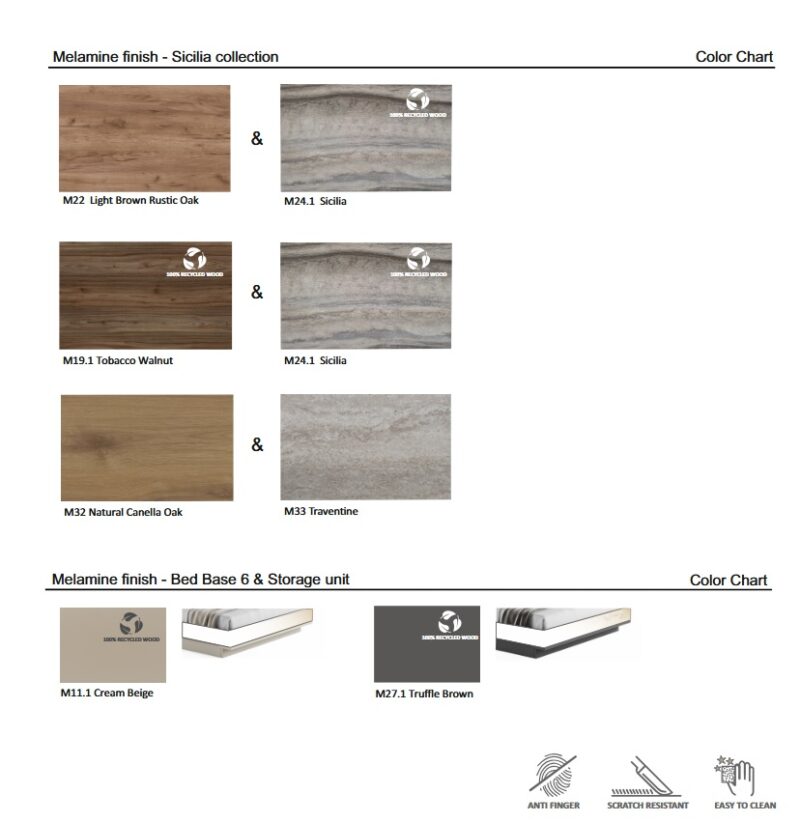 Όλα τα υλικά που χρησιμοποιούνται για την κατασκευή του κρεβατιού είναι υψηλών προδιαγραφών και διαθέτουν anti-scratch coating για μεγάλη αντοχή στις γρατζουνιές και τα χτυπήματα και ευκολία στο καθάρισμα και των πιο δύσκολων λεκέδων. Επίσης, το κρεβάτι είναι εξοπλισμένο με ειδικά λάστιχα προς αποφυγή οποιουδήποτε τριξίματος αλλά και καλύτερη στήριξη του στρώματος.