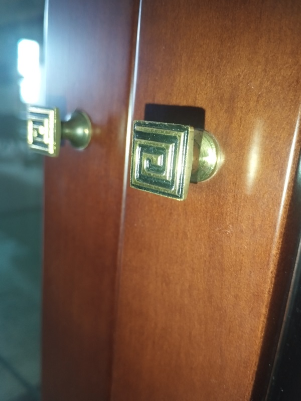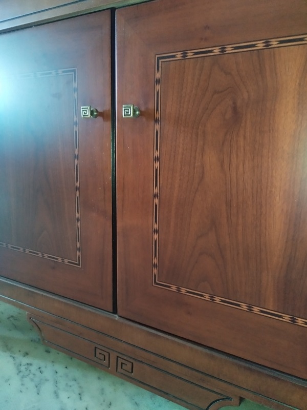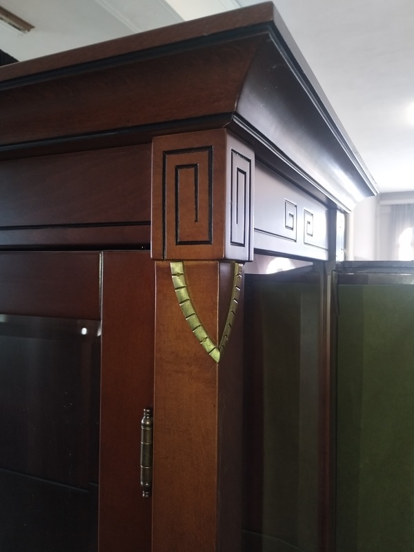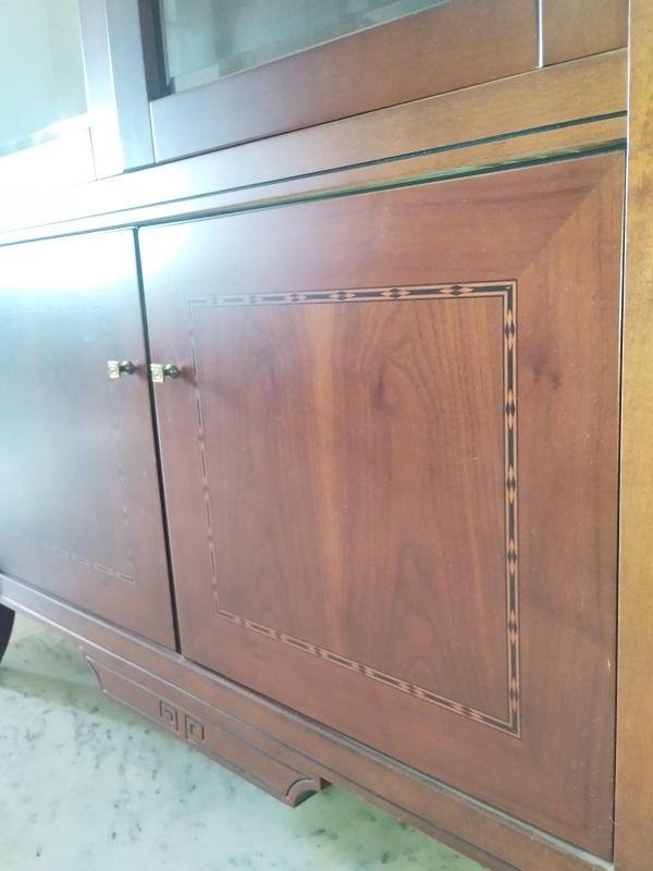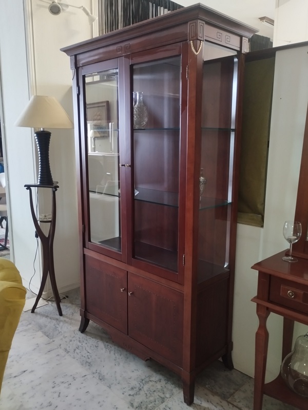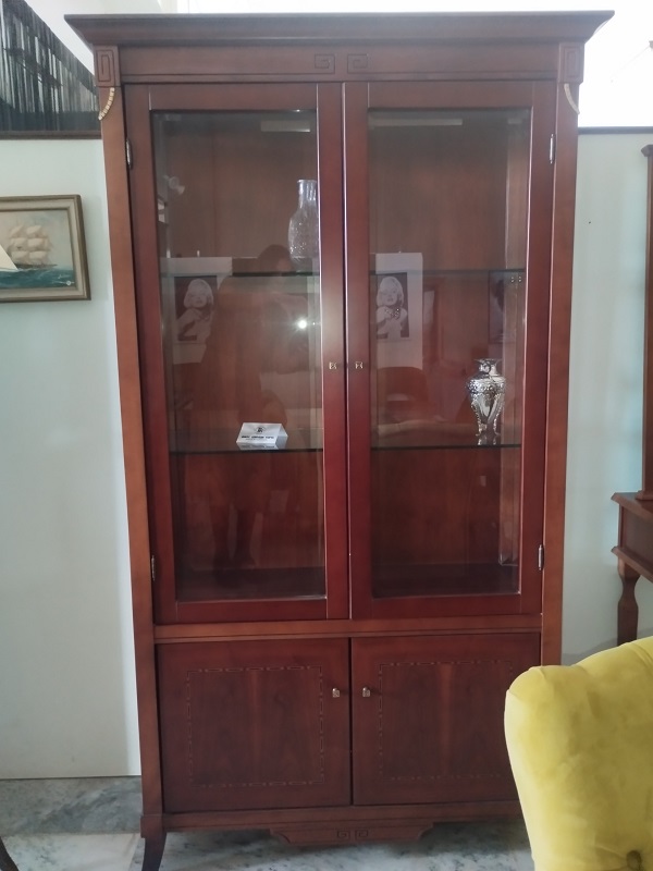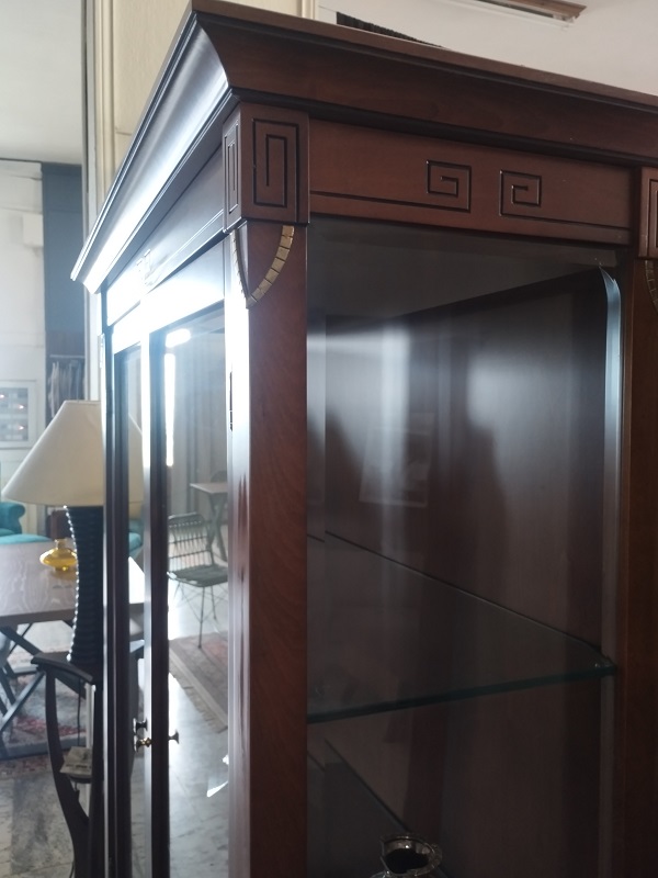 Κλασική κρυσταλλιέρα σαλονιού από μασίφ ξύλο και ρίζα καρυδιάς με γυάλινες πόρτες.